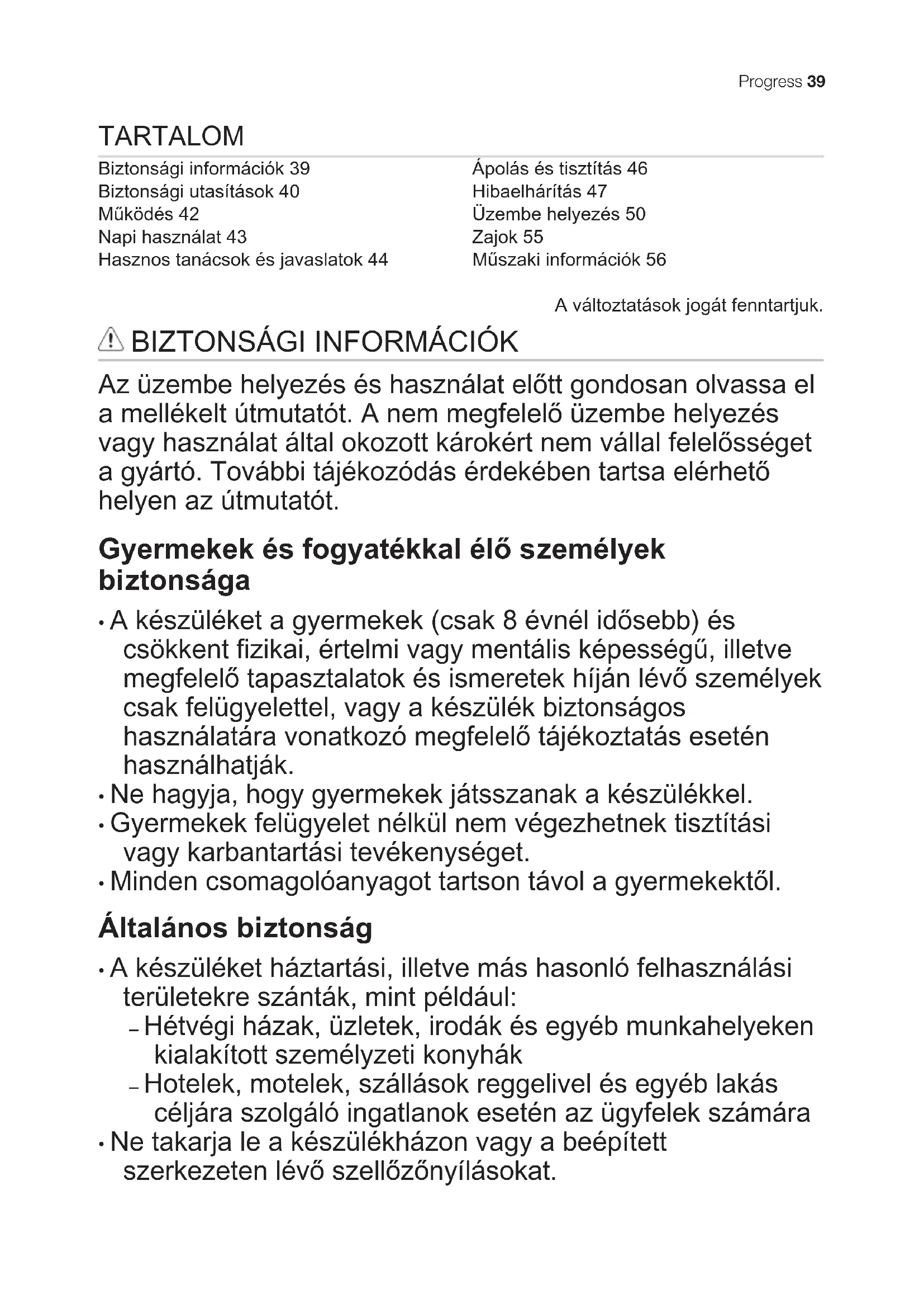 Biztonsági információk 39
