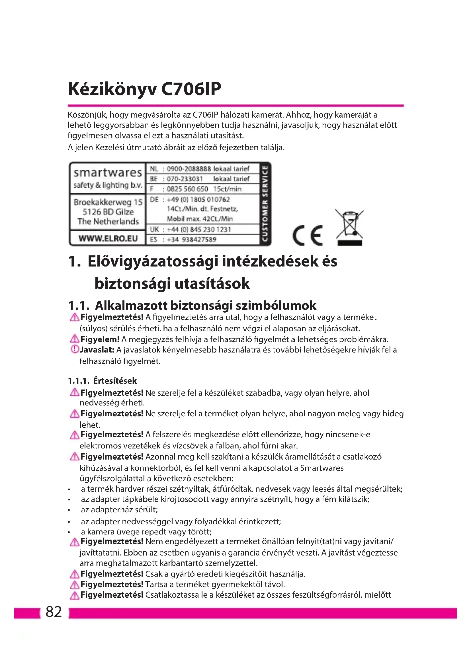 HASZNÁLATI ÚTMUTATÓ C706IP ELRO