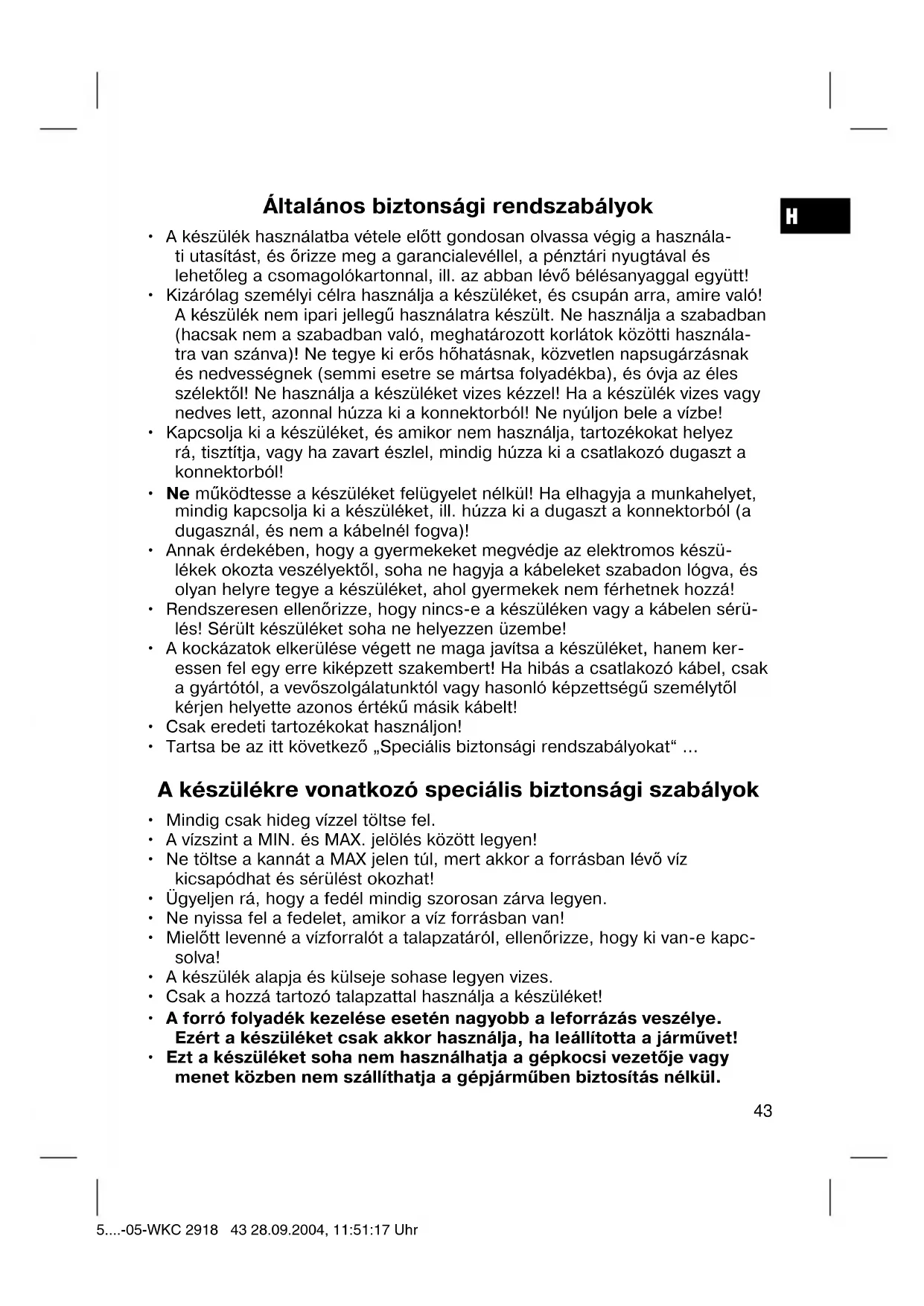 - Tartsa be az itt következő „Speciális biztonsági rendszabályokat“ ...