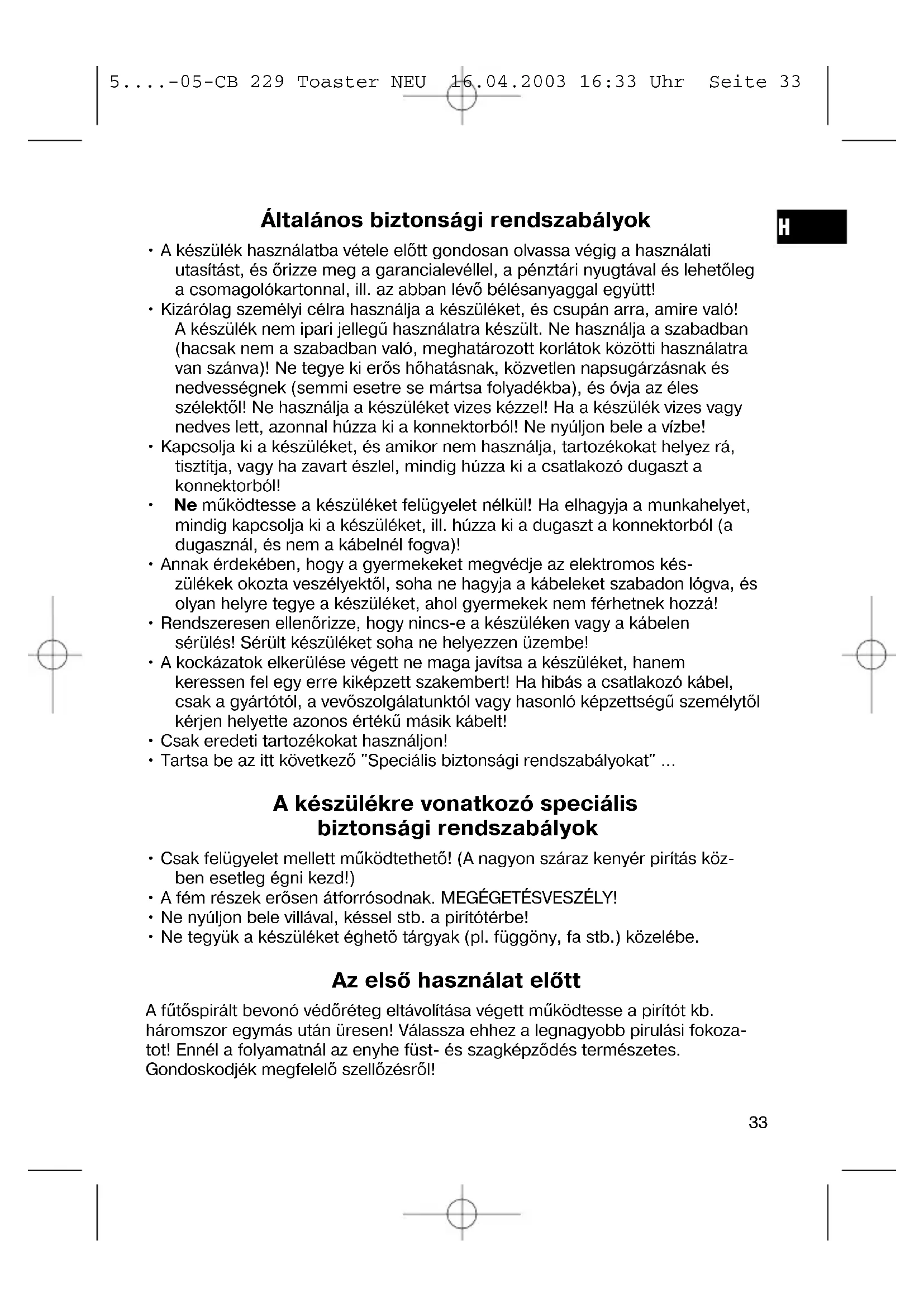 - Csak felügyelet mellett működtethető! (A nagyon száraz kenyér pirítás közben esetleg égni kezd!)