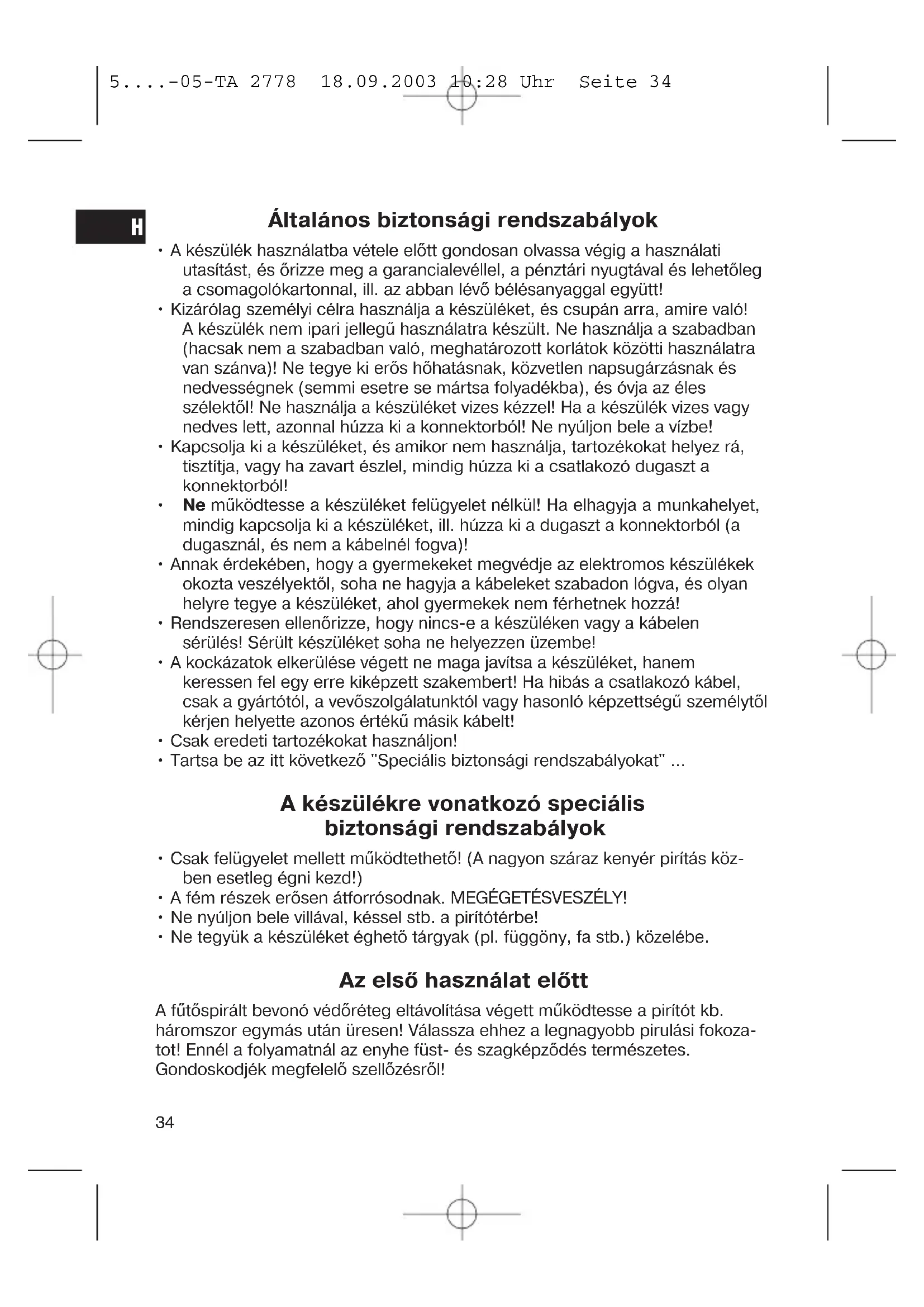 - Csak felügyelet mellett működtethető! (A nagyon száraz kenyér pirítás köz- ben esetleg égni kezd!)