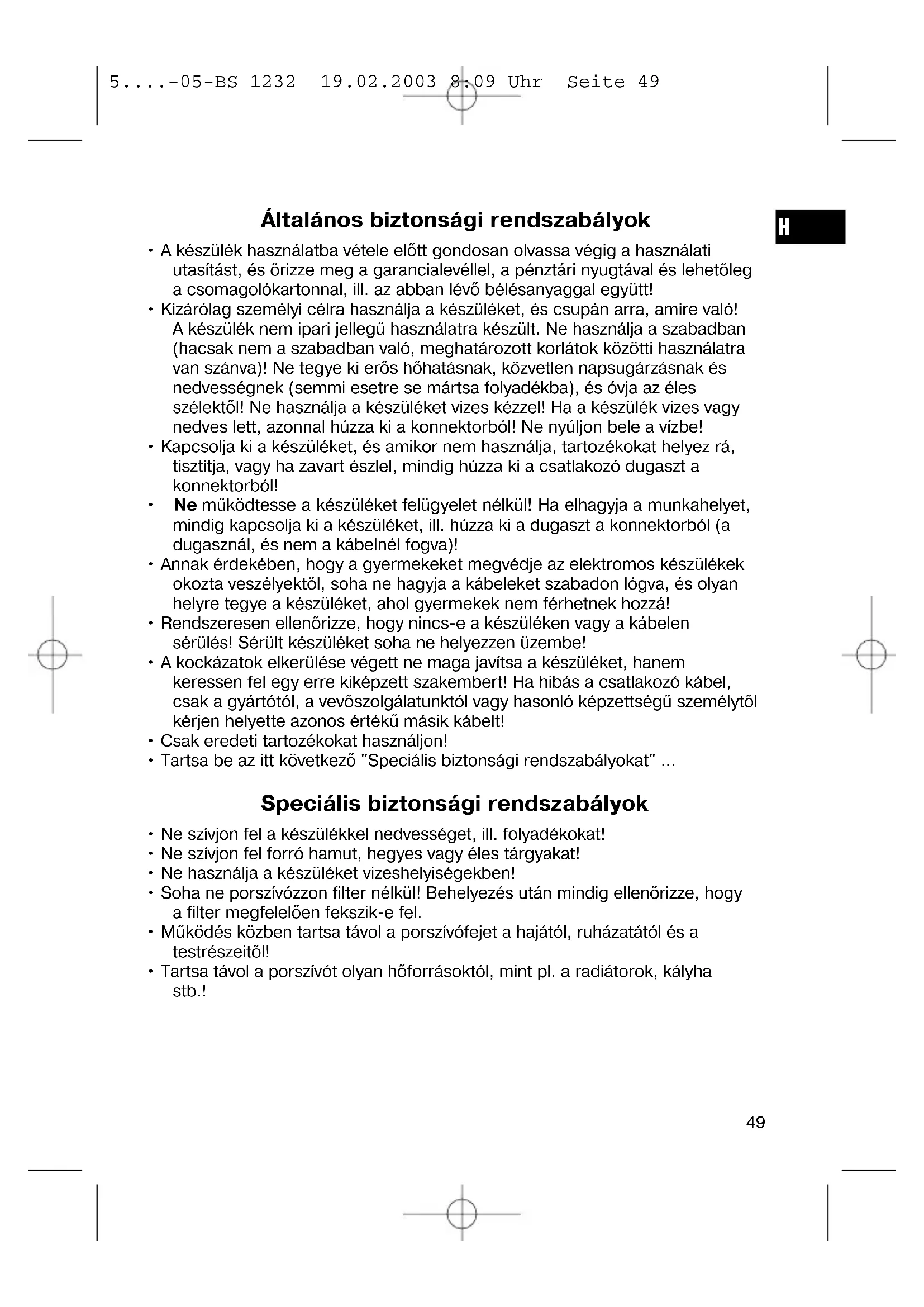 - Tartsa be az itt következő "Speciális biztonsági rendszabályokat" ... Speciális biztonsági rendszabályok