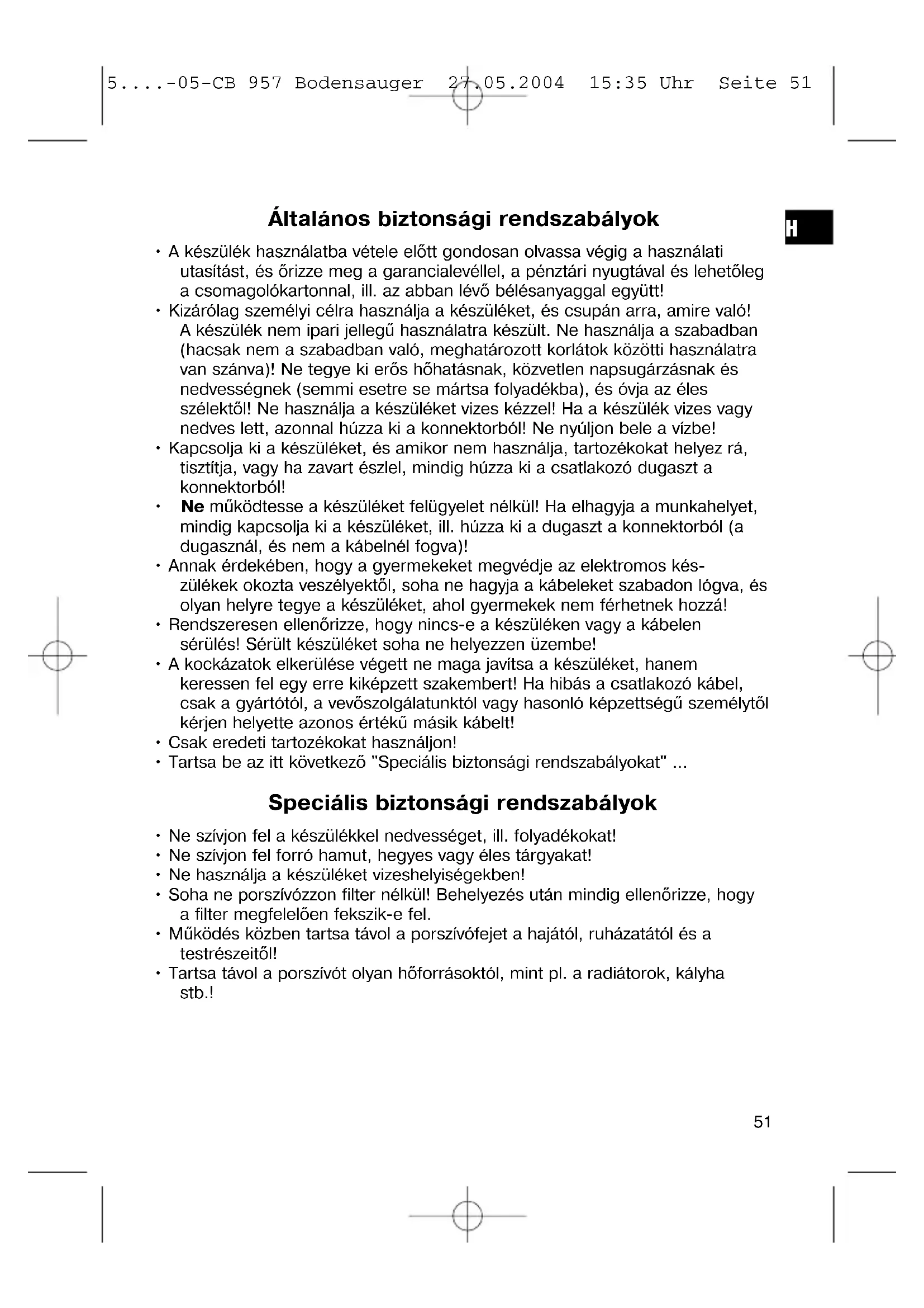 5....-05-CB 957 Bodensauger 27.05.2004 15:35 Uhr Seite 51Használatba vétel A kezelőelemek áttekintése