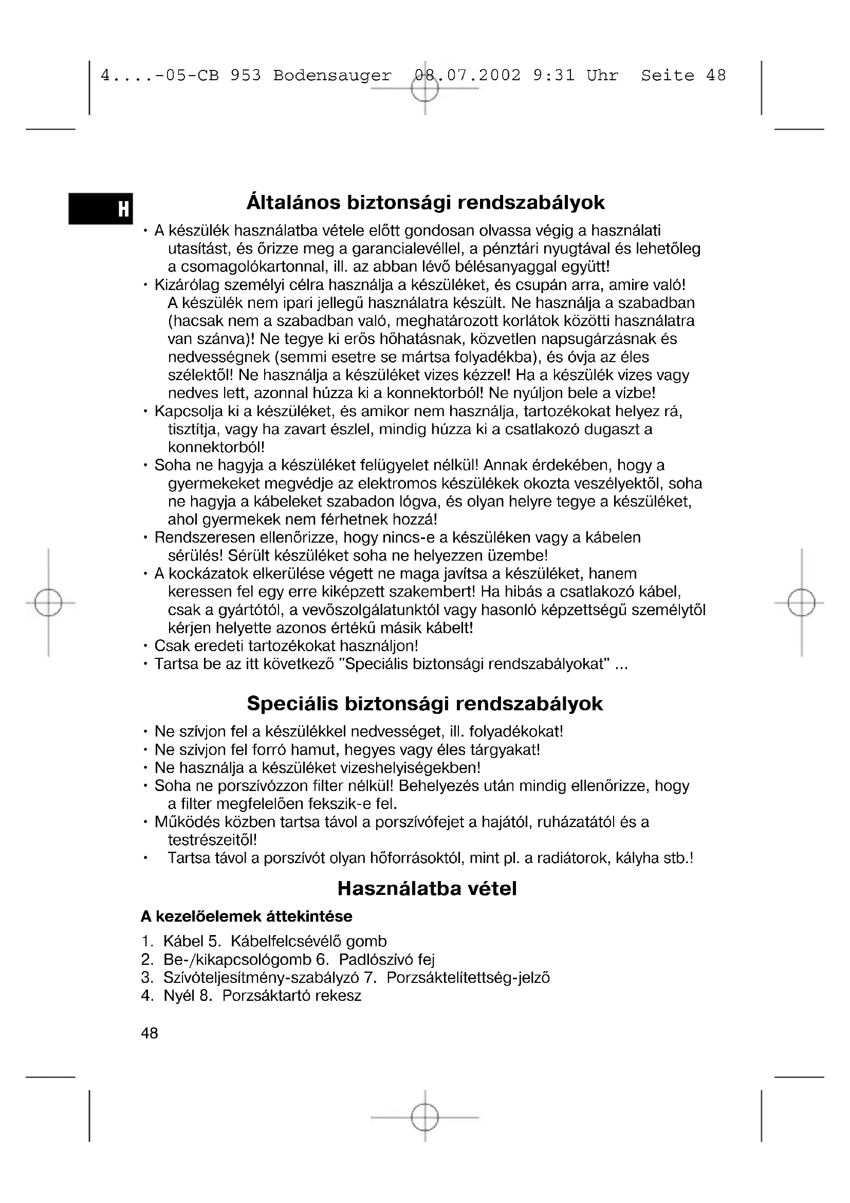 CB 953 - Porszívó BOMANN - Ingyenes használati útmutató