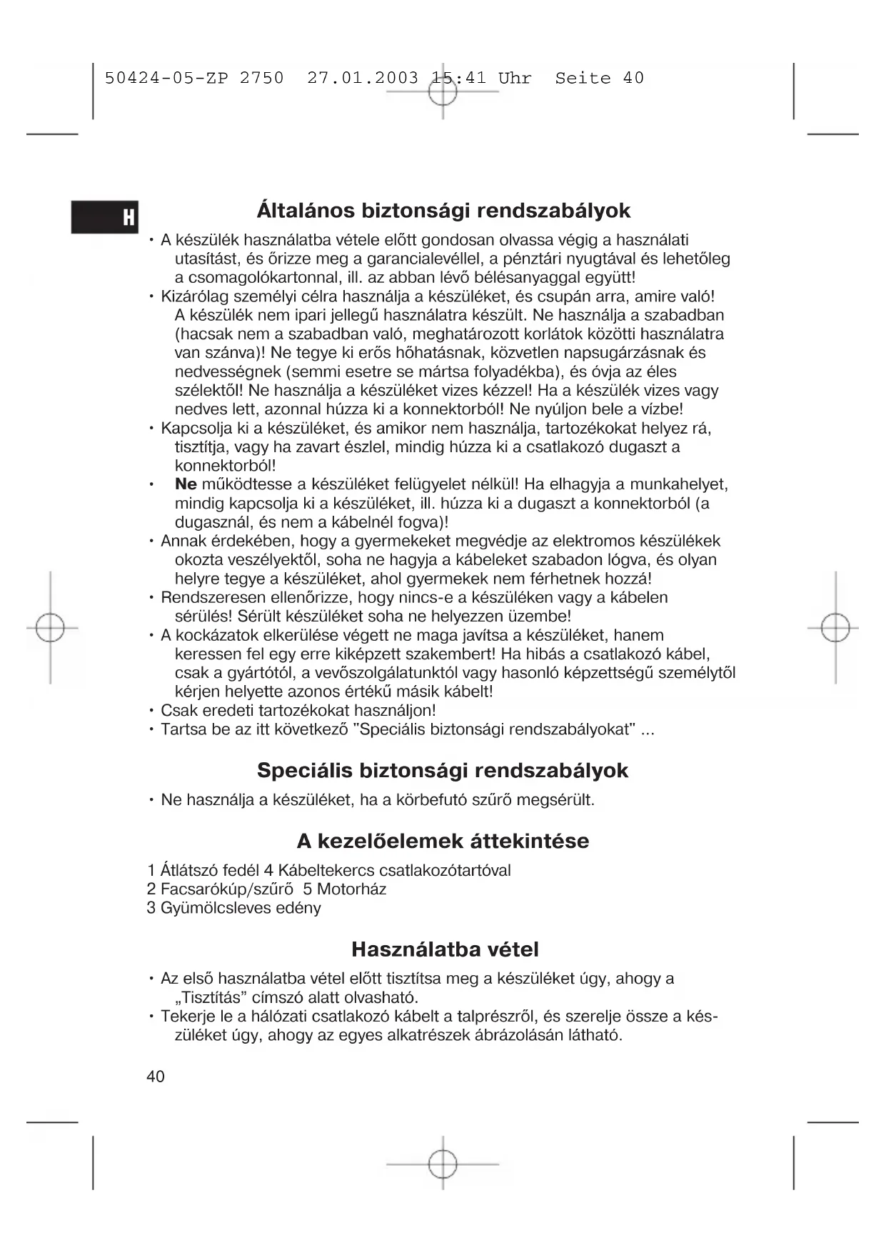 50424-05-ZP 2750 27.01.2003 15:41 Uhr Seite 42A garanciális idő után A garanciális idő eltelte után a megfelelő szakkereskedésben vagy javítószol- gálatnál végeztethet térítésköteles javításokat.