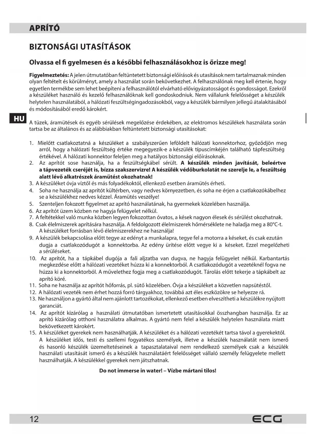 - Szenteljen fokozott figyelmet az aprito hasznalatanak, ha gyermekek kozeluben hasznalja.