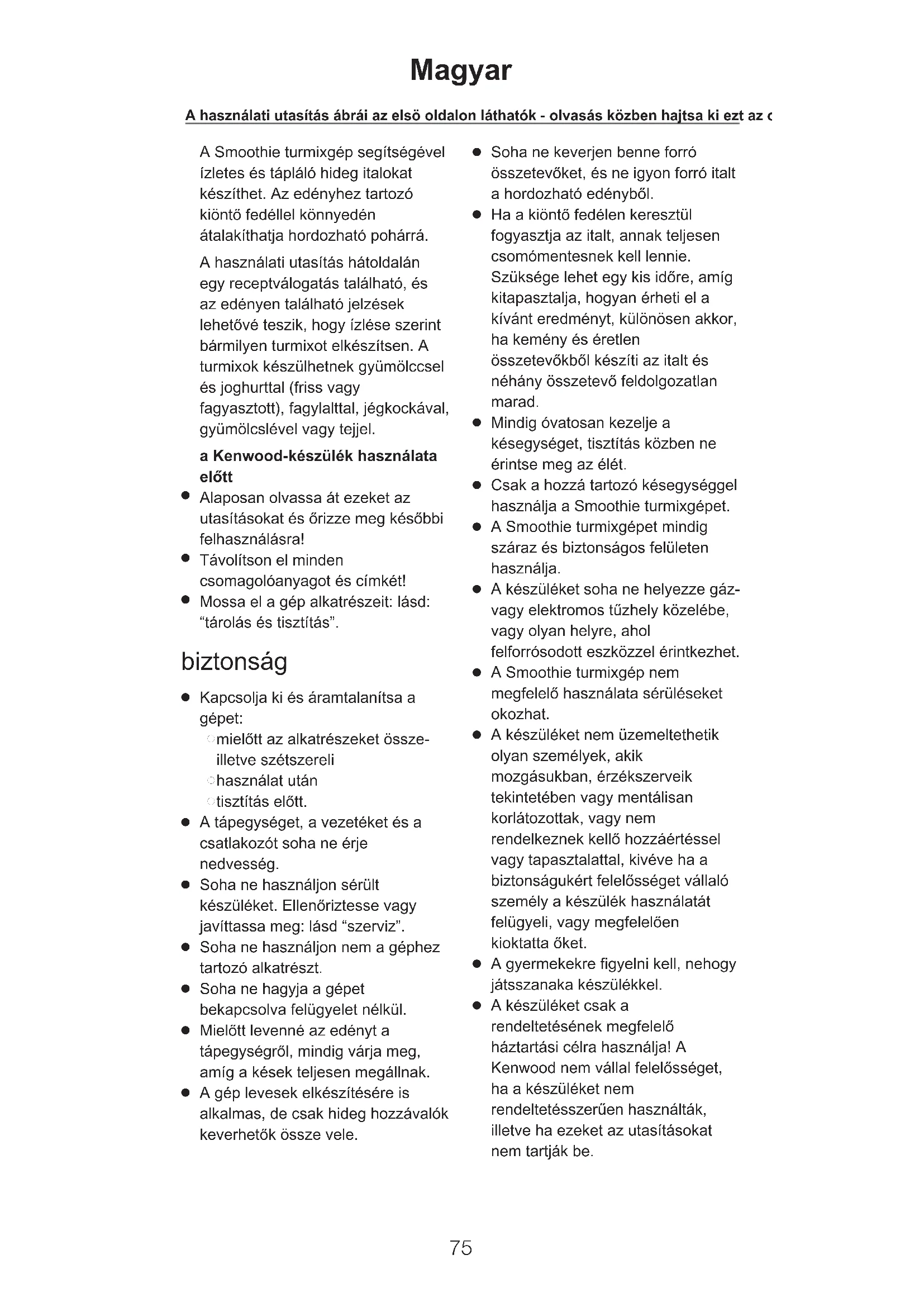 A készüléket csak a rendeltetésének megfelelő háztartási célra használja! A Kenwood nem vállal felelősséget, ha a készüléket nem rendeltetésszerűen használták, illetve ha ezeket az utasításokat nem tartják be.