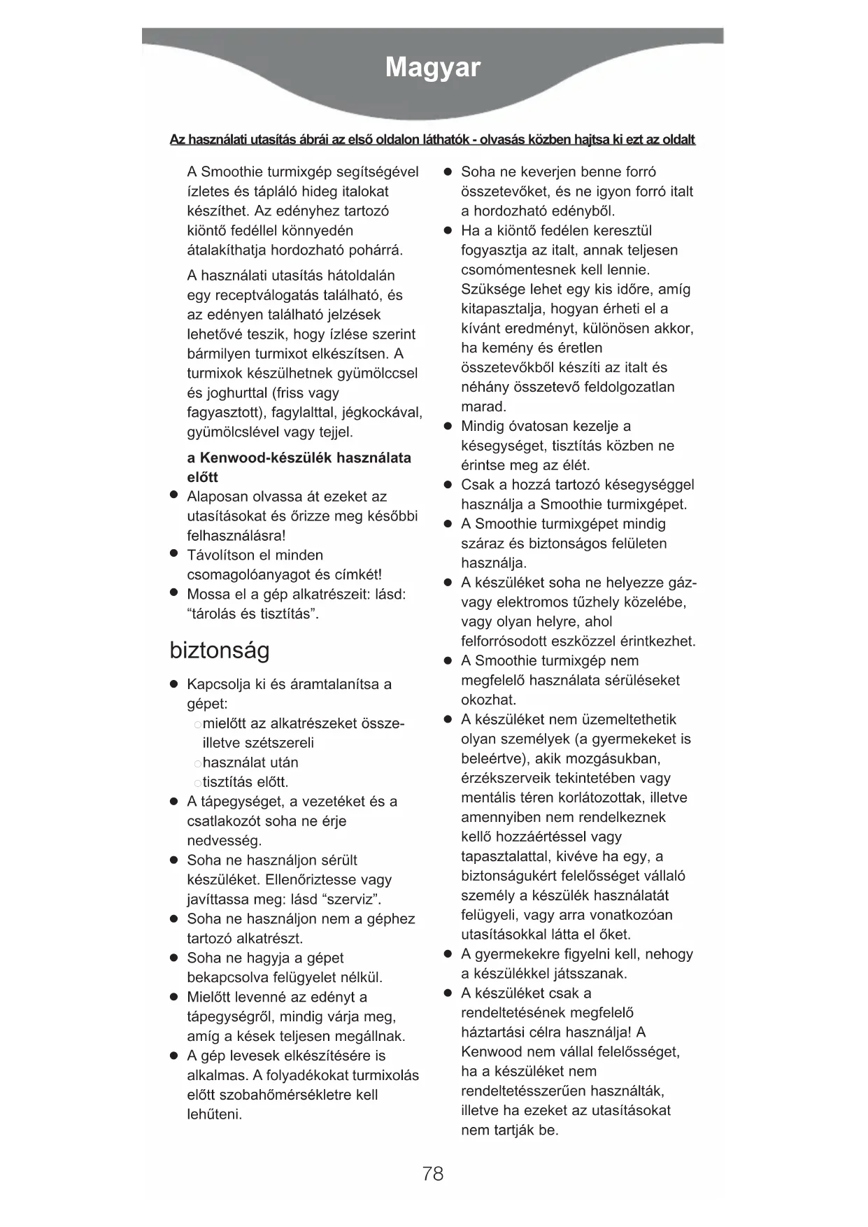 A készüléket csak a rendeltetésének megfelelő háztartási célra használja! A Kenwood nem vállal felelősséget, ha a készüléket nem rendeltetésszerűen használták, illetve ha ezeket az utasításokat nem tartják be. Magyar