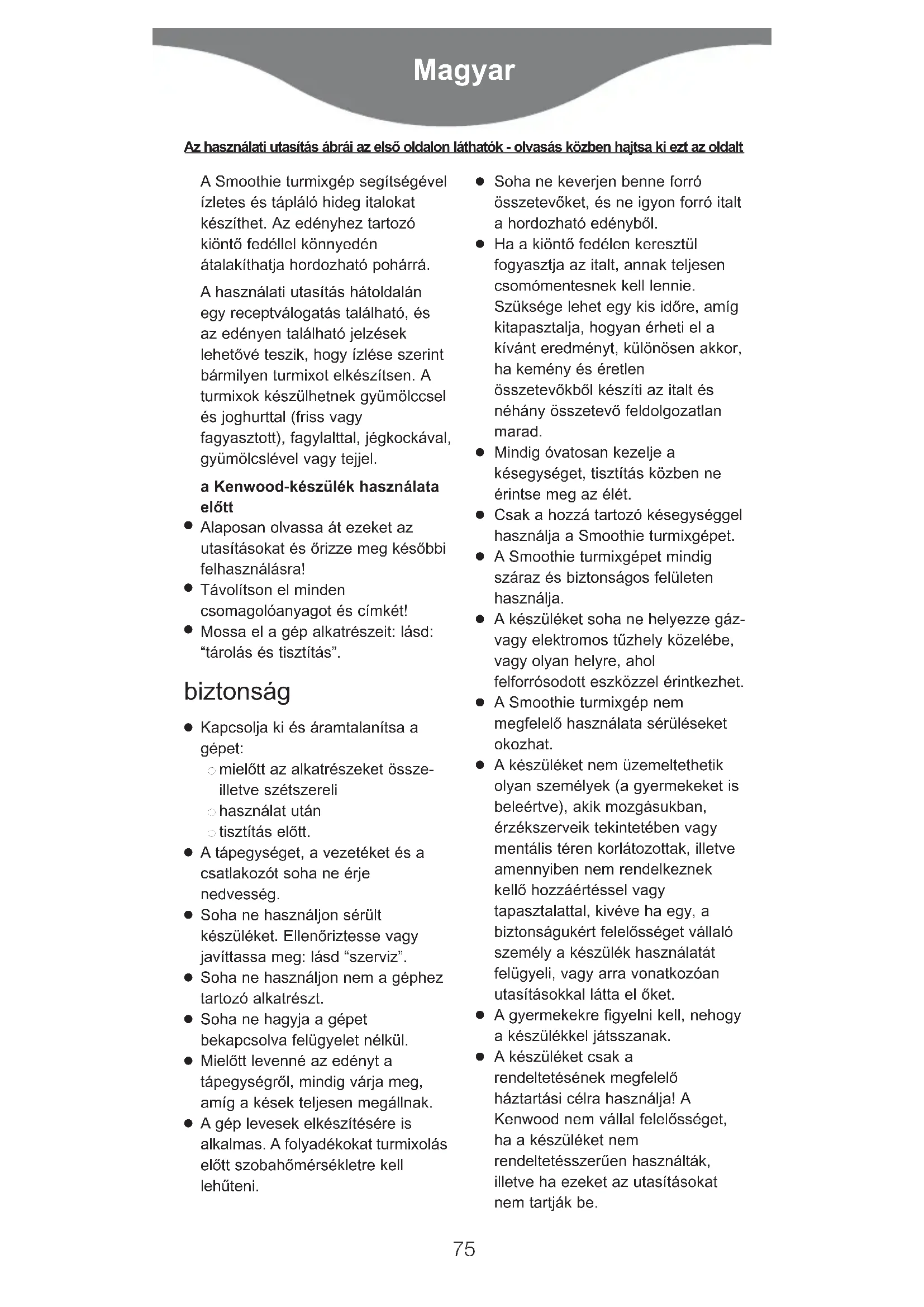 A készüléket csak a rendeltetésének megfelelő háztartási célra használja! A Kenwood nem vállal felelősséget, ha a készüléket nem rendeltetésszerűen használták, illetve ha ezeket az utasításokat nem tartják be. Magyar