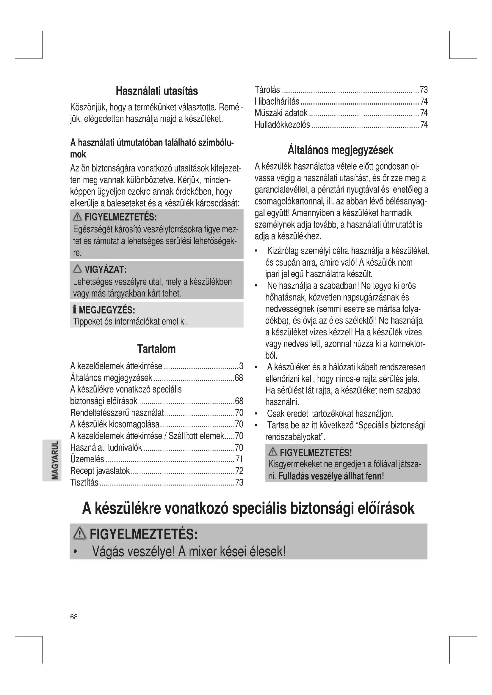 - Vágásveszélye!Amixerkéseiélesek!69 FIGYELMEZTETÉS: