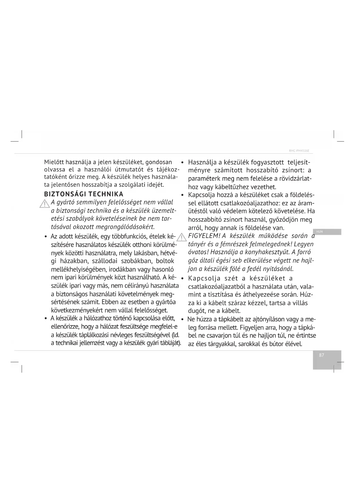 HASZNÁLATI ÚTMUTATÓ RMCPM4506E Redmond