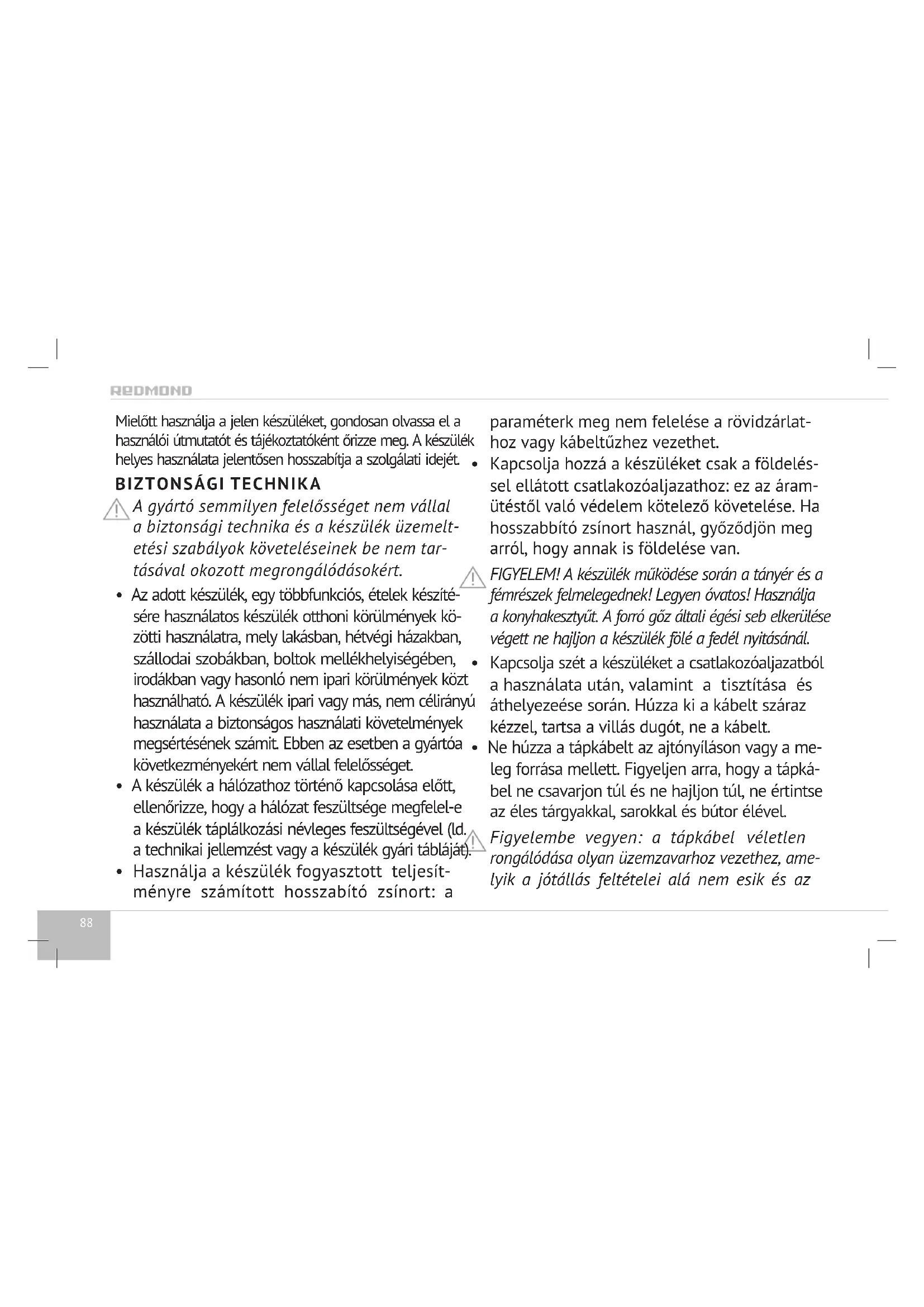 HASZNÁLATI ÚTMUTATÓ RMCM4515E Redmond