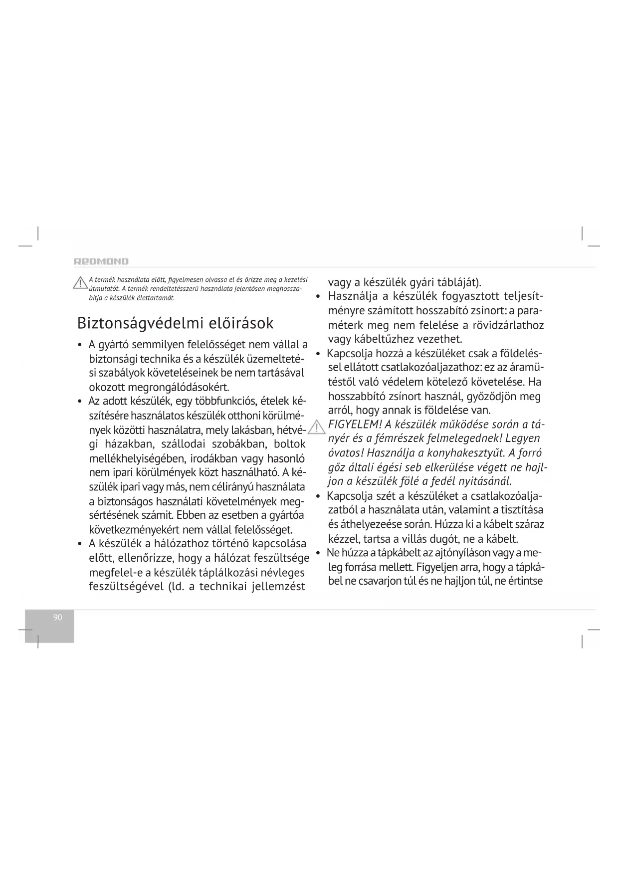 HASZNÁLATI ÚTMUTATÓ RMCM800SE Redmond