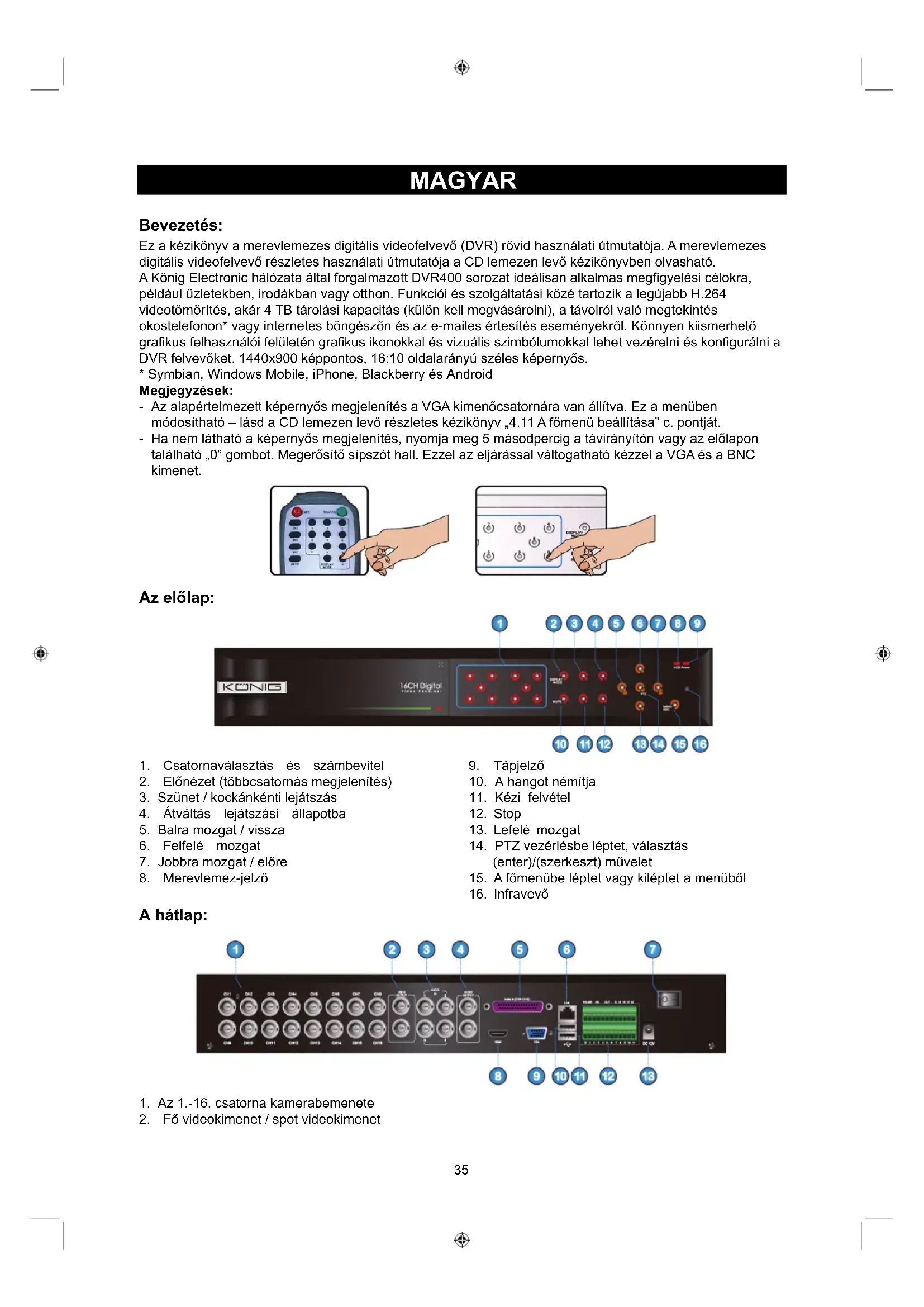 HASZNÁLATI ÚTMUTATÓ SECDVR416 KONIG