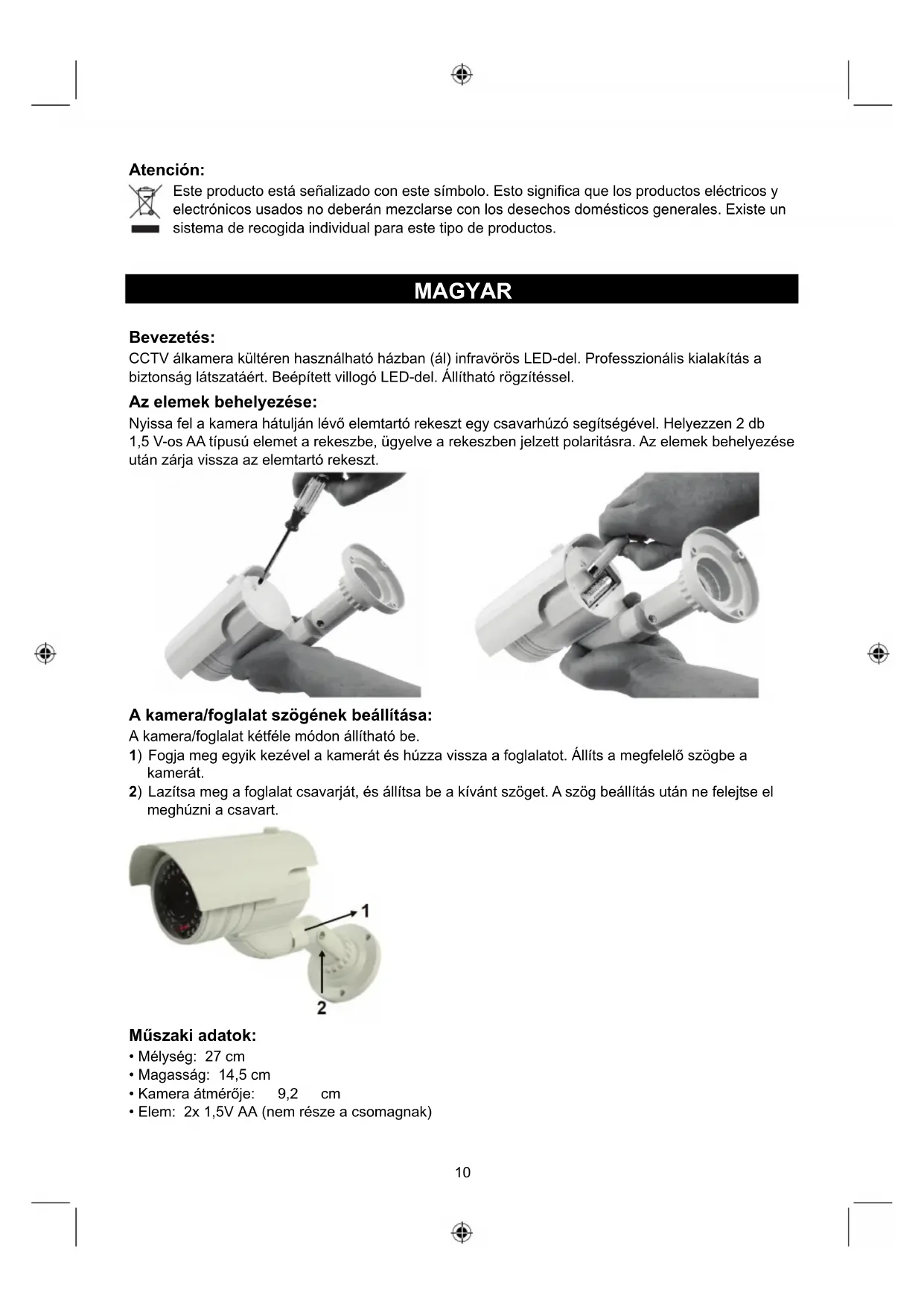 CCTV alkamera kūltérén használató házban (ál) infravörös LED-del. Professzionális kialakītas a biztonság latszataér. Beépitét villogó LED-del. Àllitható rögzítěssel.