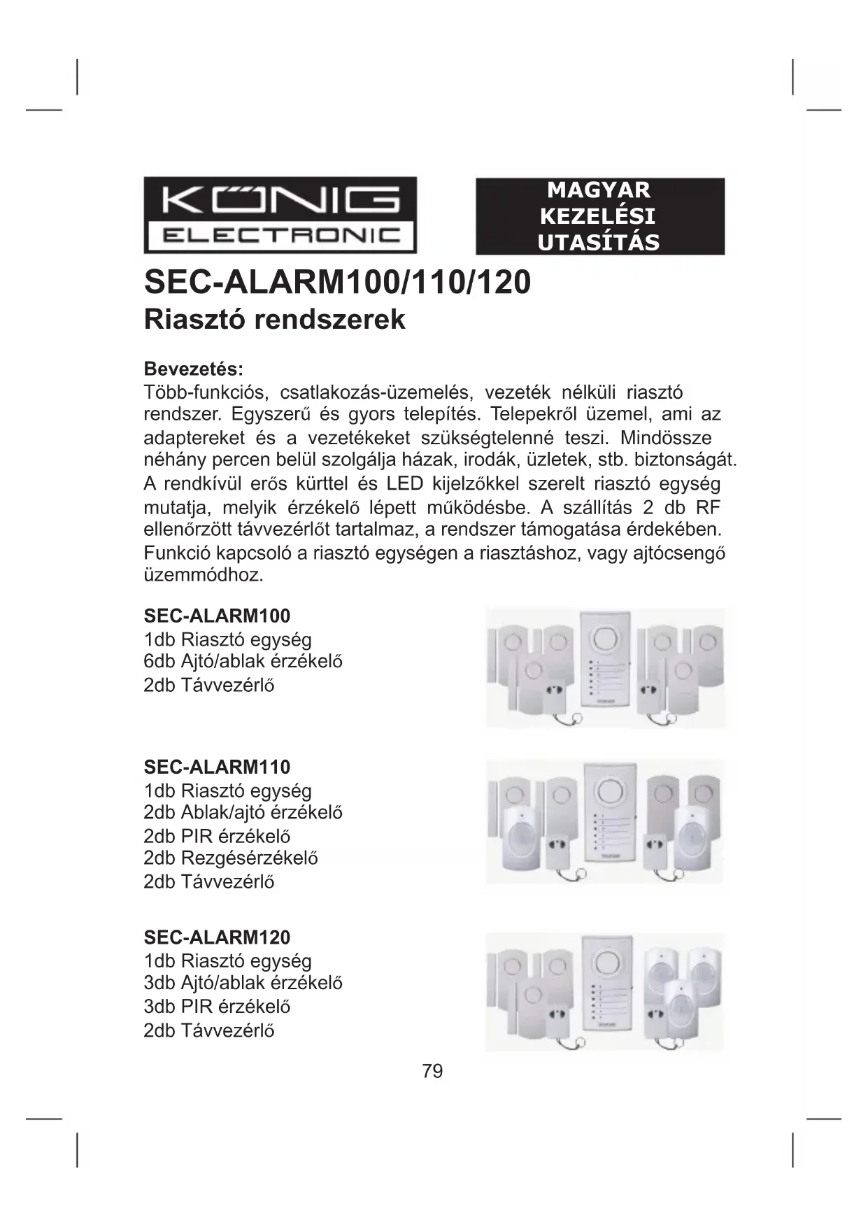 Találja meg az eszköz kézikönyvét ingyenesen SECALARM120 KONIG PDF formátumban.