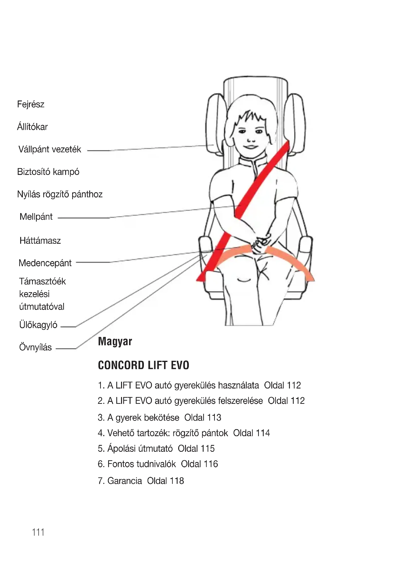 1. A LIFT EVO autó gyerekülés használata Oldal 112