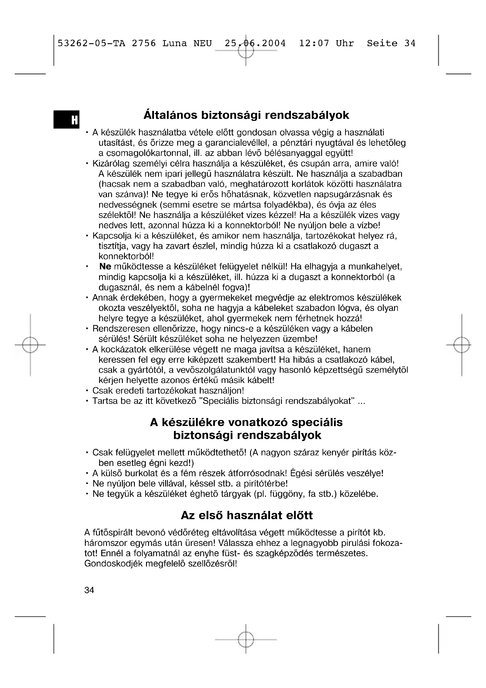 - Csak felügyelet mellett muködtethető! (A nagyon száraz kenyér pirítás kóben esetleg égni kezd!)