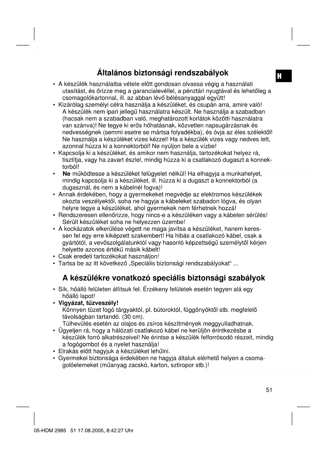 - Gyermekei biztonsága érdekében ne hagyja általuk elérhető helyen a csoma- golóelemeket (műanyag zacskó, karton, sztiropor stb.)! 05-HDM 2985 51 17.08.2005, 8:42:27 UhrH