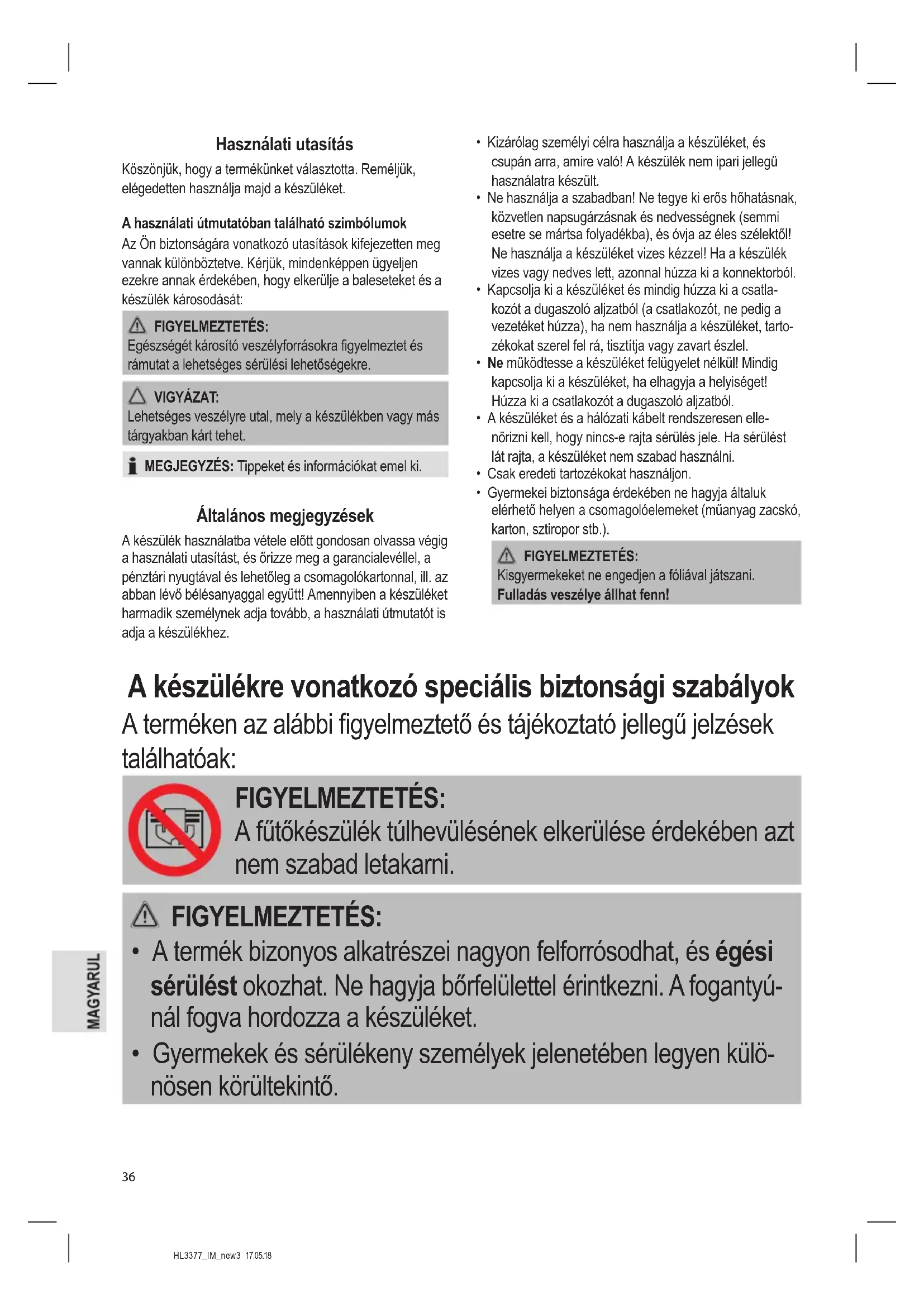 - Nem szabad a fűtőkészüléket közvetlenül konnektor alá állítani.HL3377_IM_new3 17.05.18