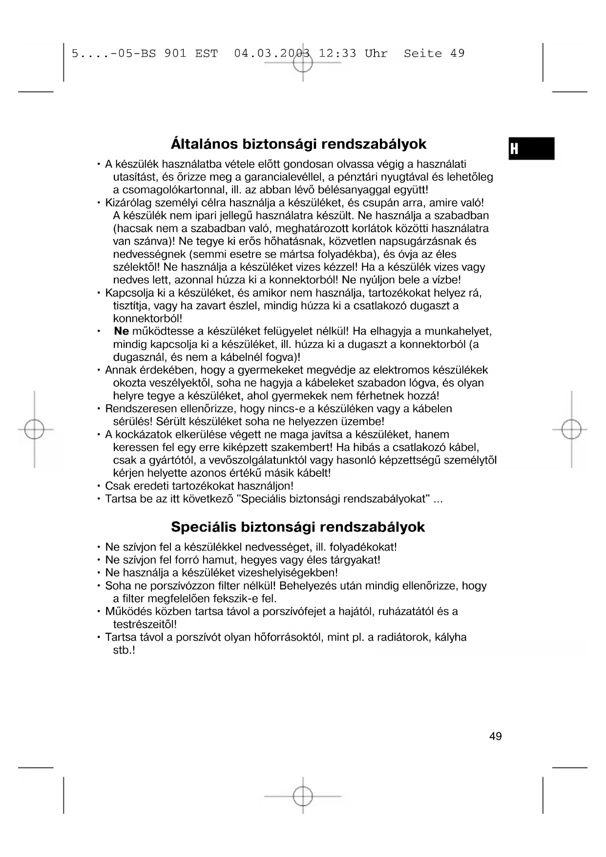 - Tartsa be az itt következő "Speciális biztonsági rendszabályokat" ... Speciális biztonsági rendszabályok