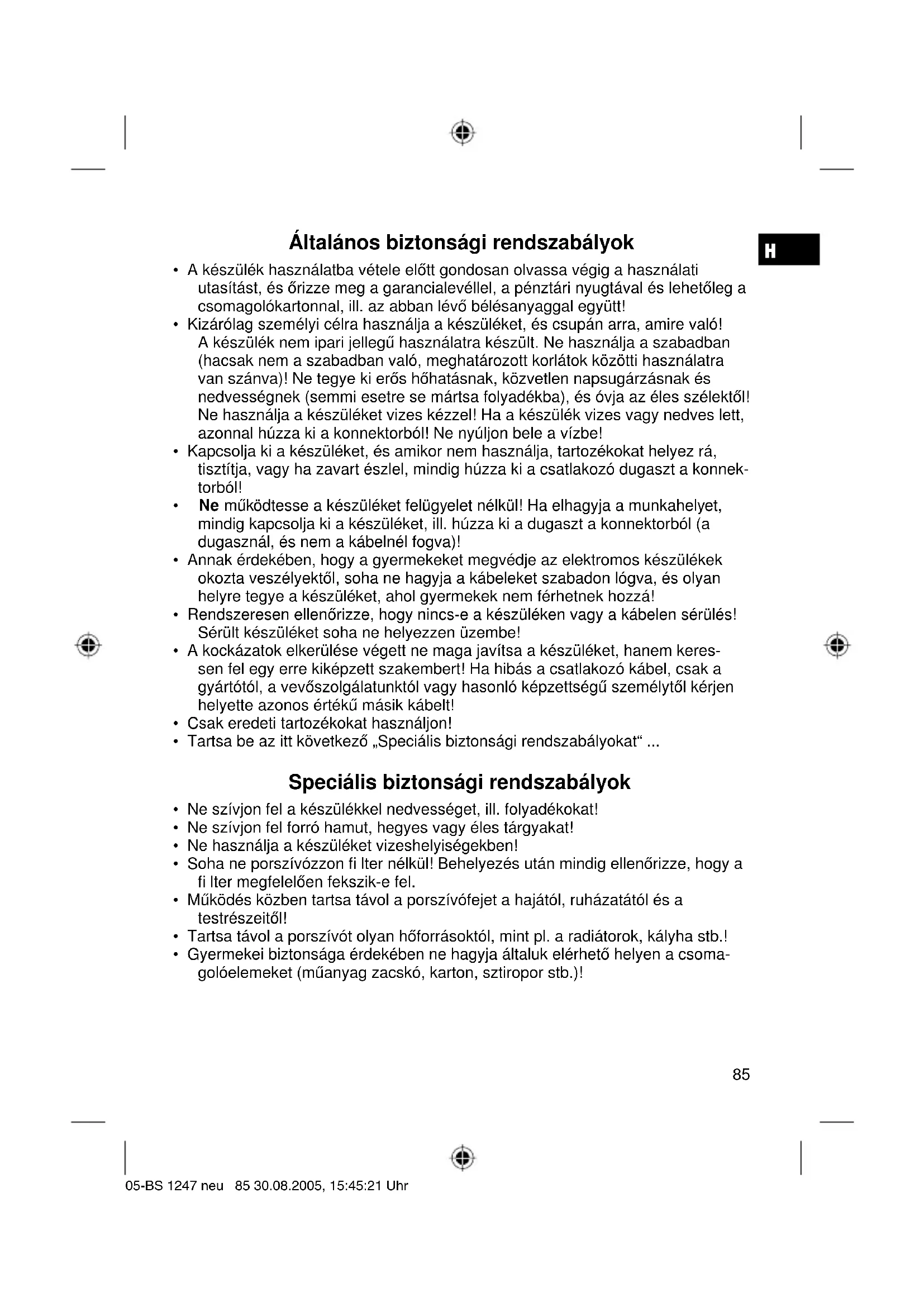 - Gyermekei biztonsága érdekében ne hagyja általuk elérhető helyen a csoma- golóelemeket (műanyag zacskó, karton, sztiropor stb.)! 05-BS 1247 neu 85 30.08.2005, 15:45:21 UhrH