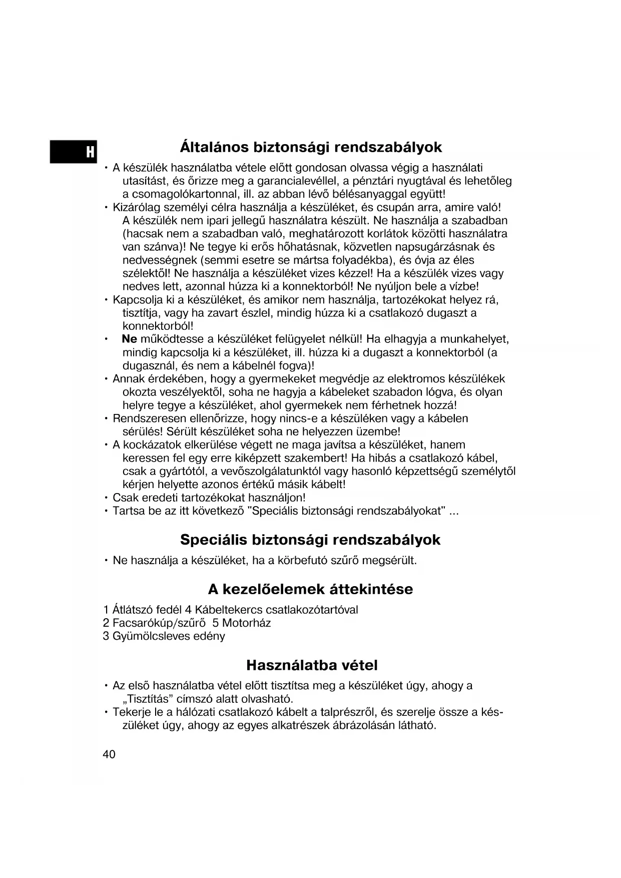- A készülék használatba vétele előtt gondosan olvassa végig a használati utasítást, és őrizze meg a garancialevéllel, a pénztári nyugtával és lehetőleg a csomagolókartonnal, ill. az abban lévő bélésanyaggal együtt!