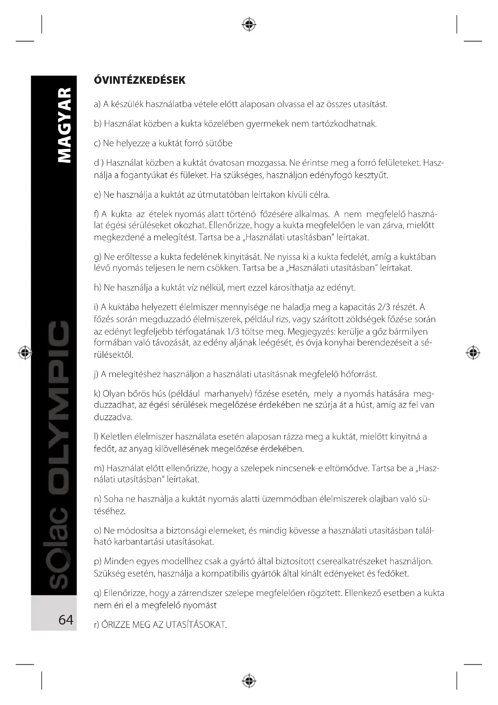 Olympic OR0964 - Fazék SOLAC - Ingyenes használati útmutató