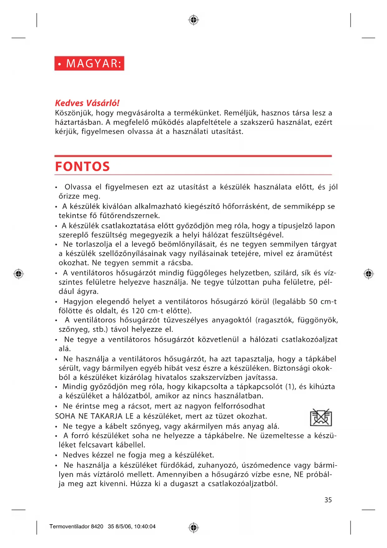 - Ne használja a ventilátoros hősugárzót ruhák szárítására, továbbá ne hagyjon bútort 50 cm-nél közelebb a készülék előtt, és ne használja 4 m² alapterületűnél kisebb helyiségekben.