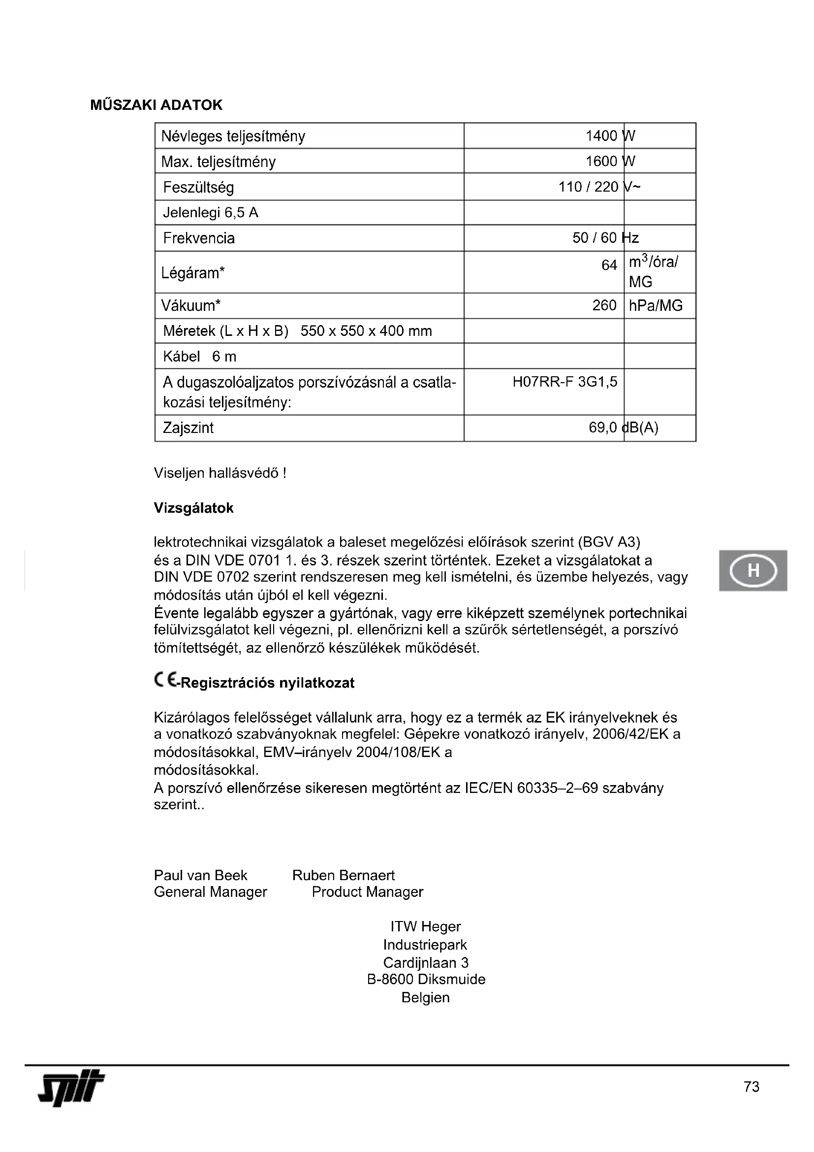 lektrotechnikai vizsgálatok a baleset megelőzési előírások szerint (BGV A3) és a DIN VDE 0701 1. és 3. részek szerint történtek. Ezeket a vizsgálatokat a DIN VDE 0702 szerint rendszeresen meg kell ismételni, és üzembe helyezés, vagy módosítás után újból el kell végezni.