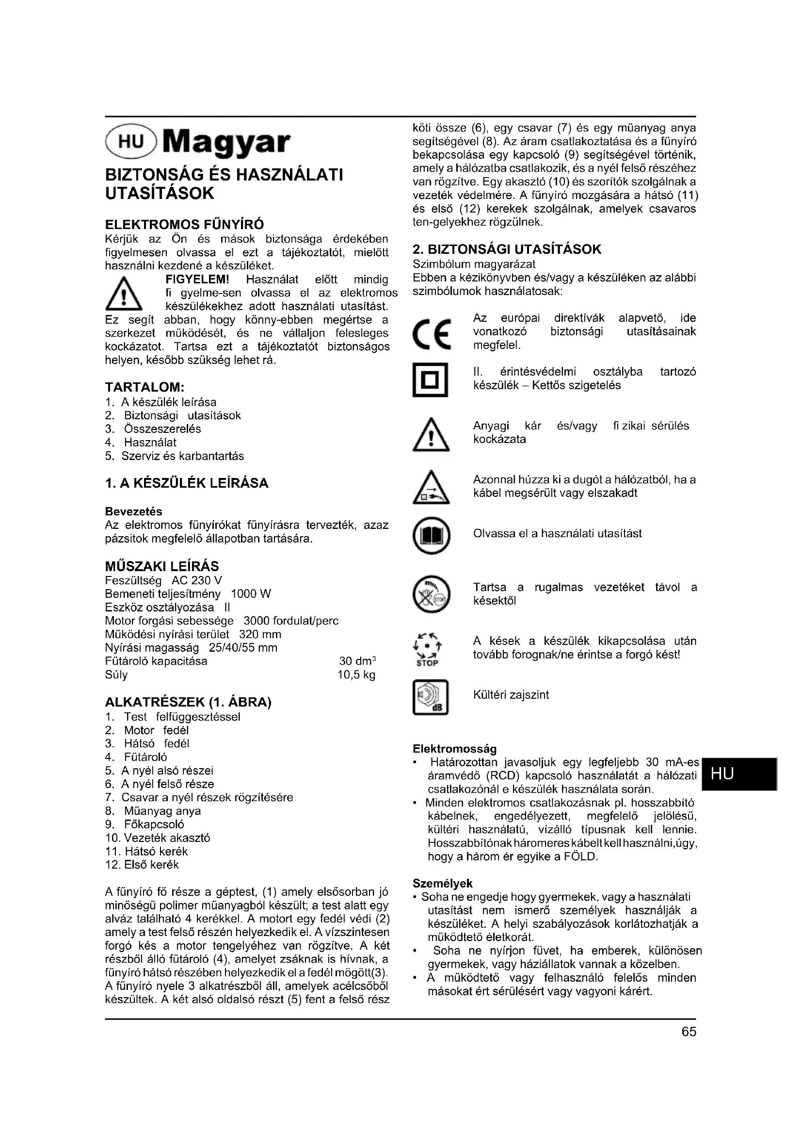 Kérjük az Ön és mások biztonsága érdekében fi gyelmesen olvassa el ezt a tájékoztatót, mielőtt használni kezdené a készüléket. FIGYELEM! Használat előtt mindig fi gyelme-sen olvassa el az elektromos készülékekhez adott használati utasítást. Ez segít abban, hogy könny-ebben megértse a szerkezet működését, és ne vállaljon felesleges kockázatot. Tartsa ezt a tájékoztatót biztonságos helyen, később szükség lehet rá. TARTALOM: