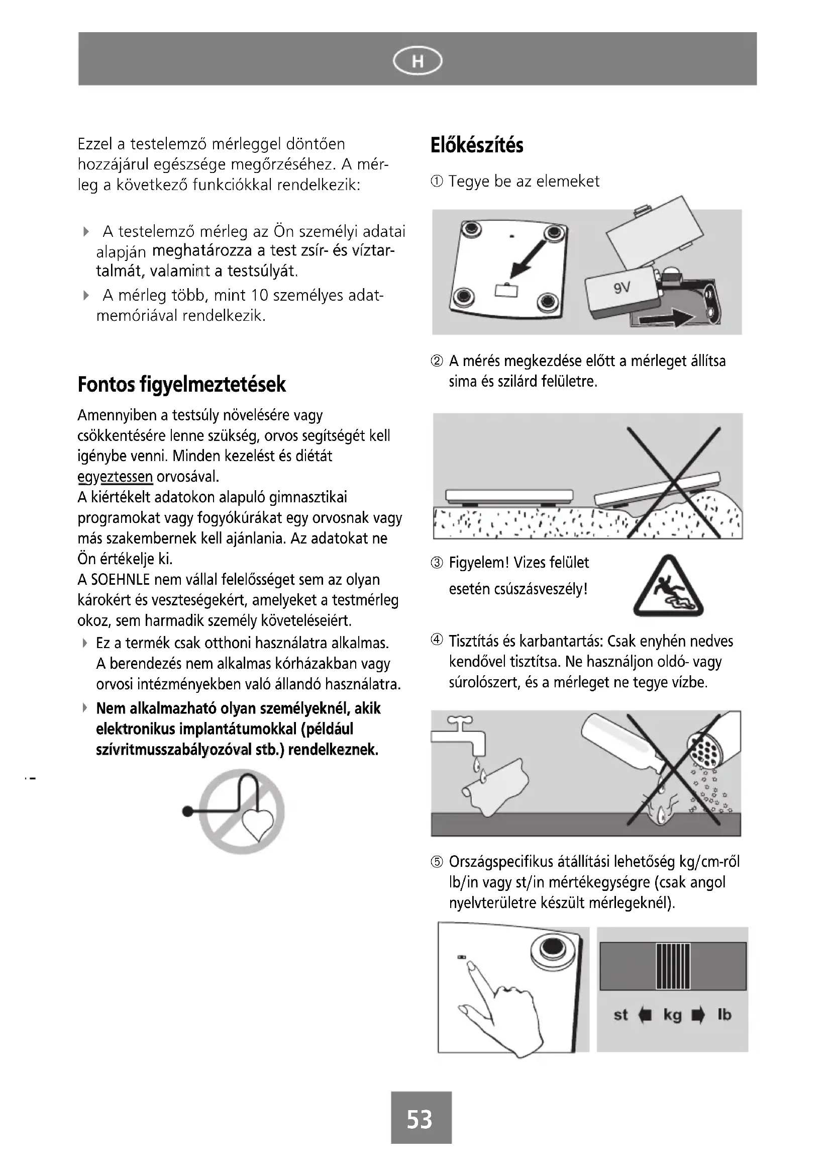 A SOEHNLE nem vallal felelosséget sem az olyan károkér és veszteségekér, amelyeket a testmerleg okoz, sem harmadik szemely kovetelseiert.