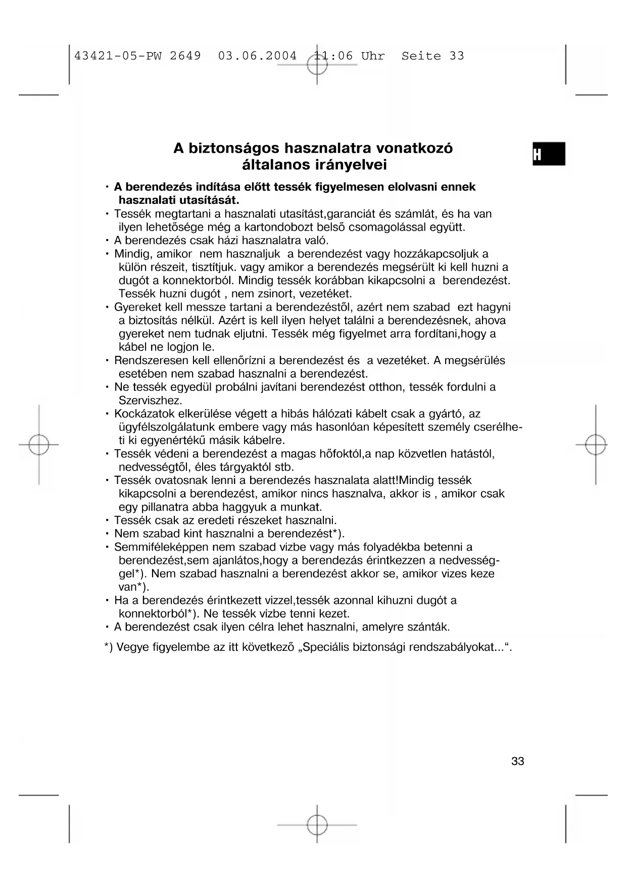 43421-05-PW 2649 03.06.2004 11:06 Uhr Seite 32A biztonságos hasznalatra vonatkozó általanos irányelvei