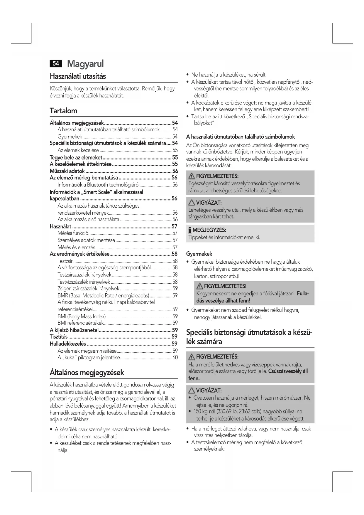 - Információk a „Smart Scale” alkalmazással kapcsolatban p. 56