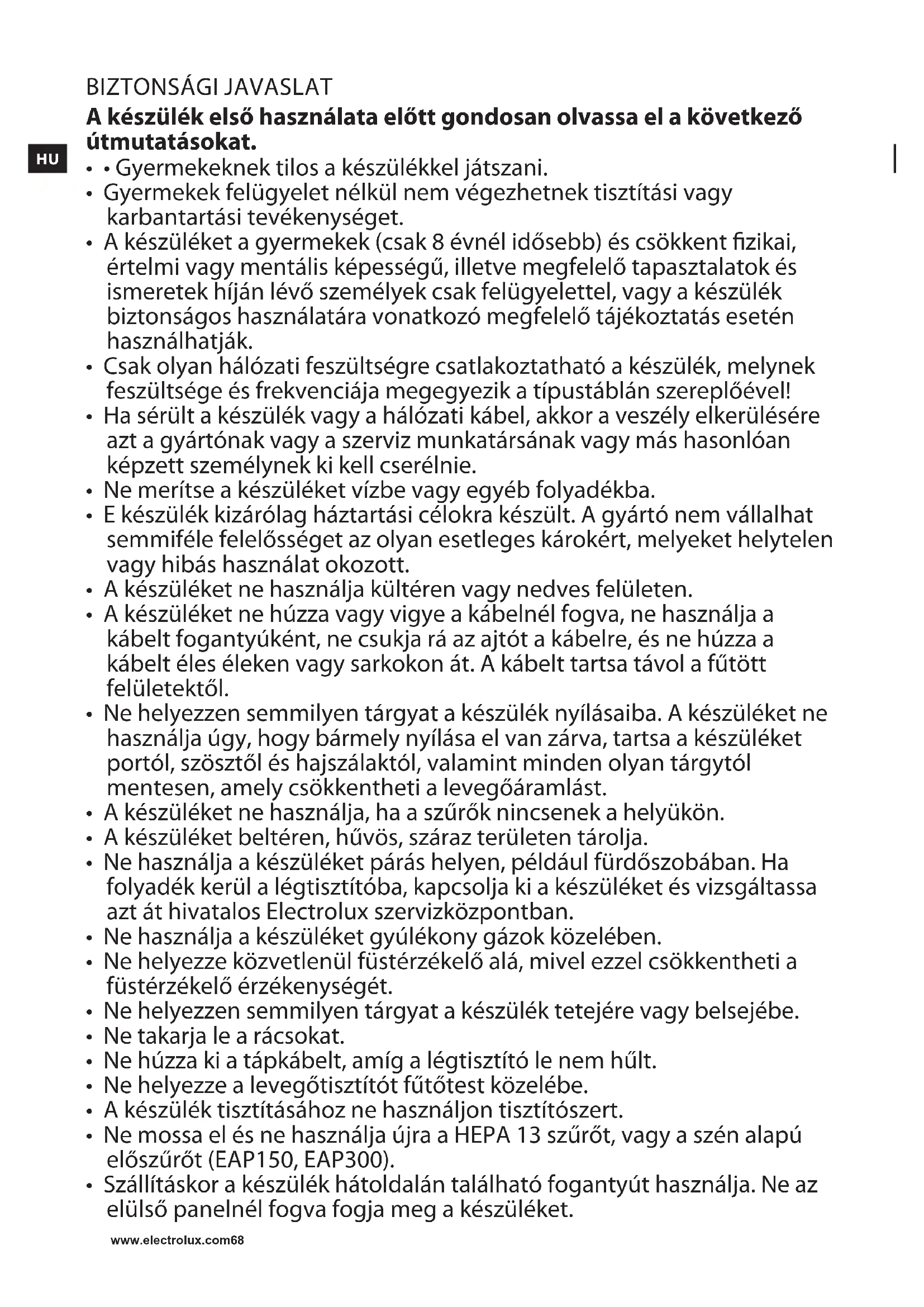 HASZNÁLATI ÚTMUTATÓ EAP150 ELECTROLUX