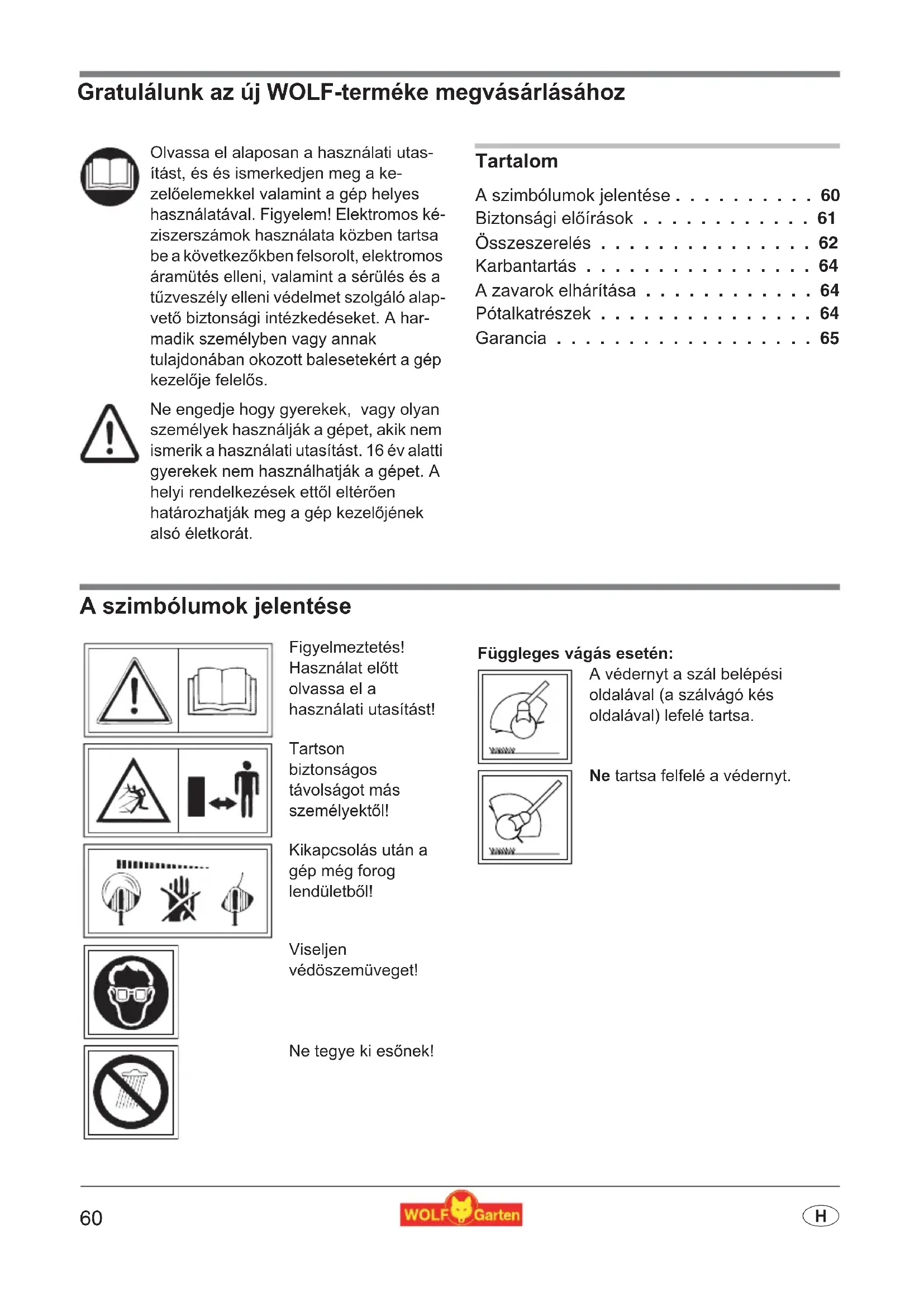 - H Gratulálunk az új WOLF-terméke megvásárlásához Tartalom A szimbólumok jelentése p. 60