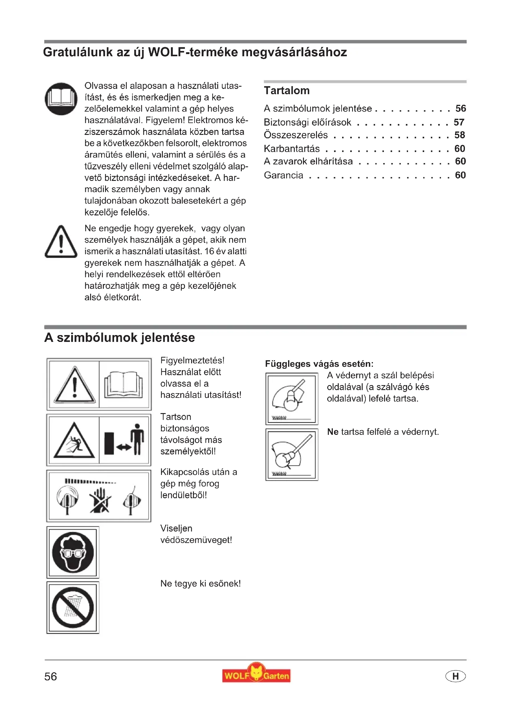 - H Gratulálunk az új WOLF-terméke megvásárlásához Tartalom A szimbólumok jelentése p. 56