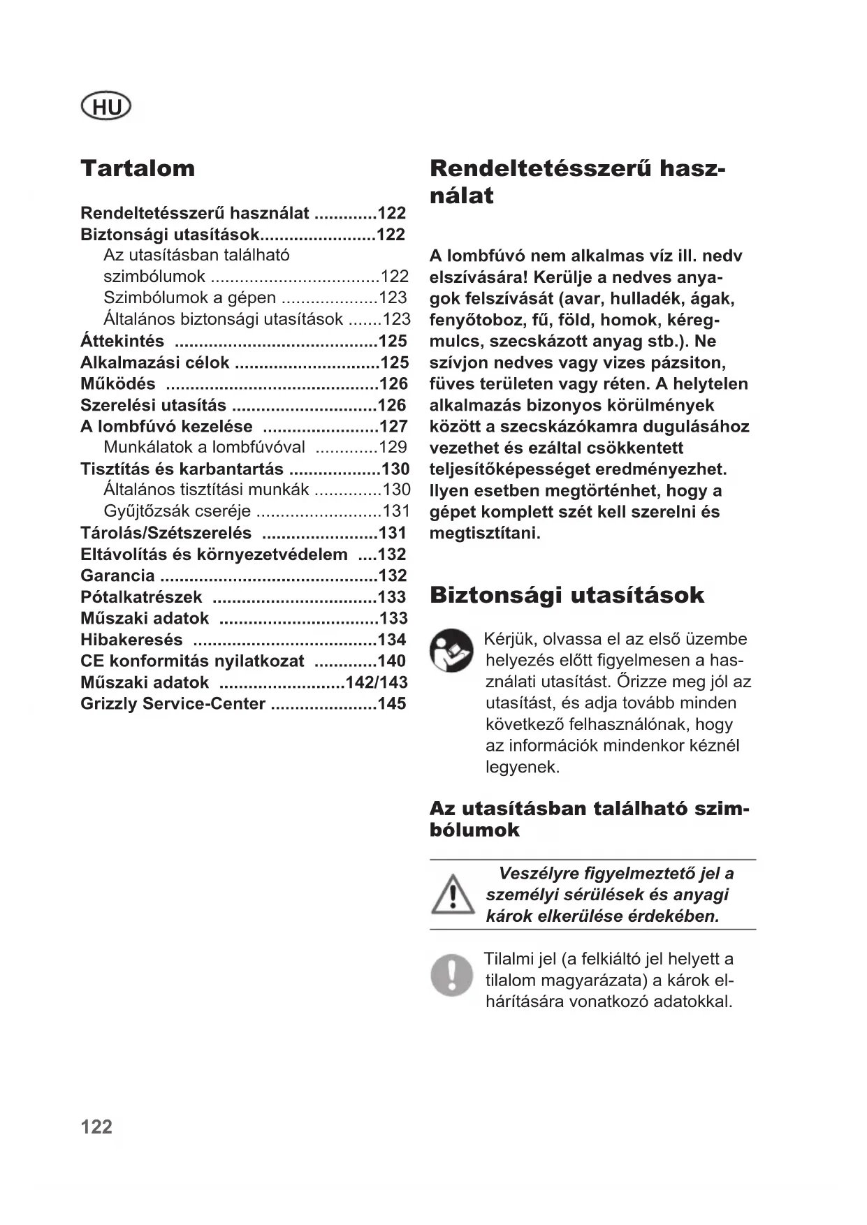 Rendeltetesszerú használat 122