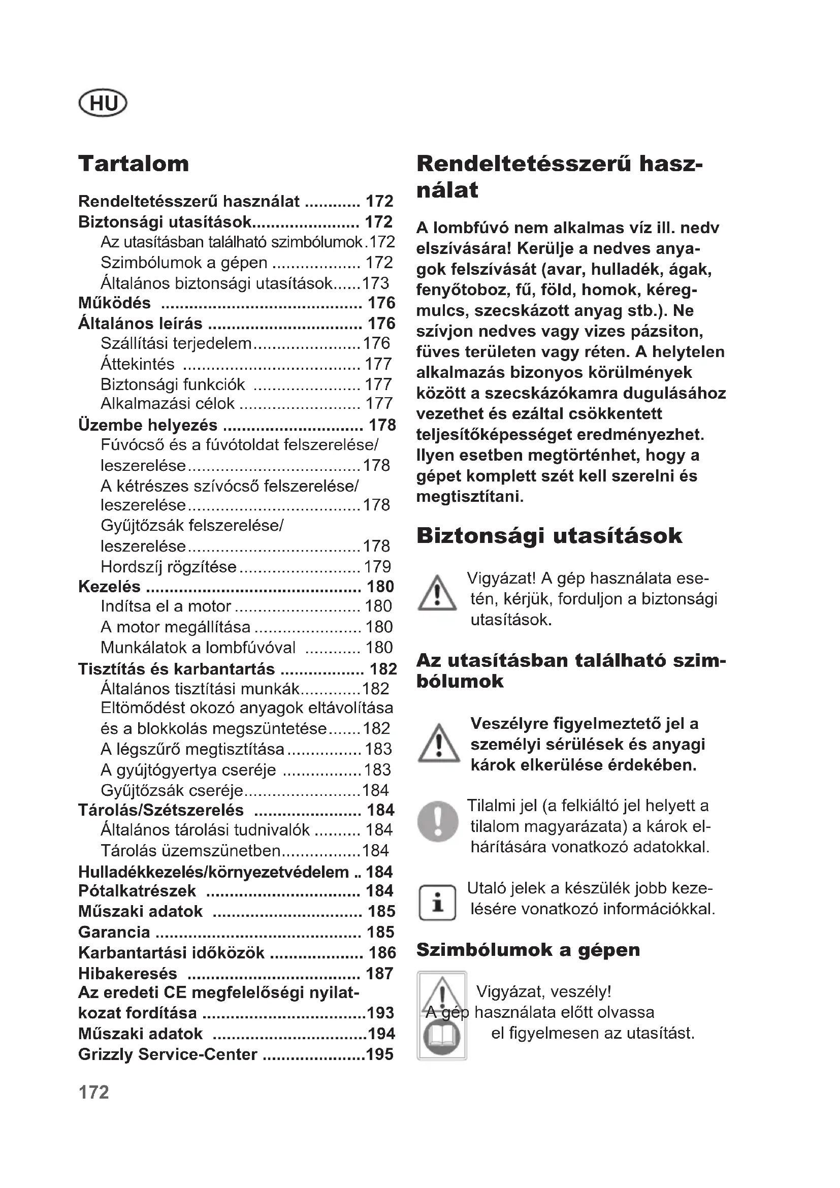 HASZNÁLATI ÚTMUTATÓ BLSB 3030 Grizzly
