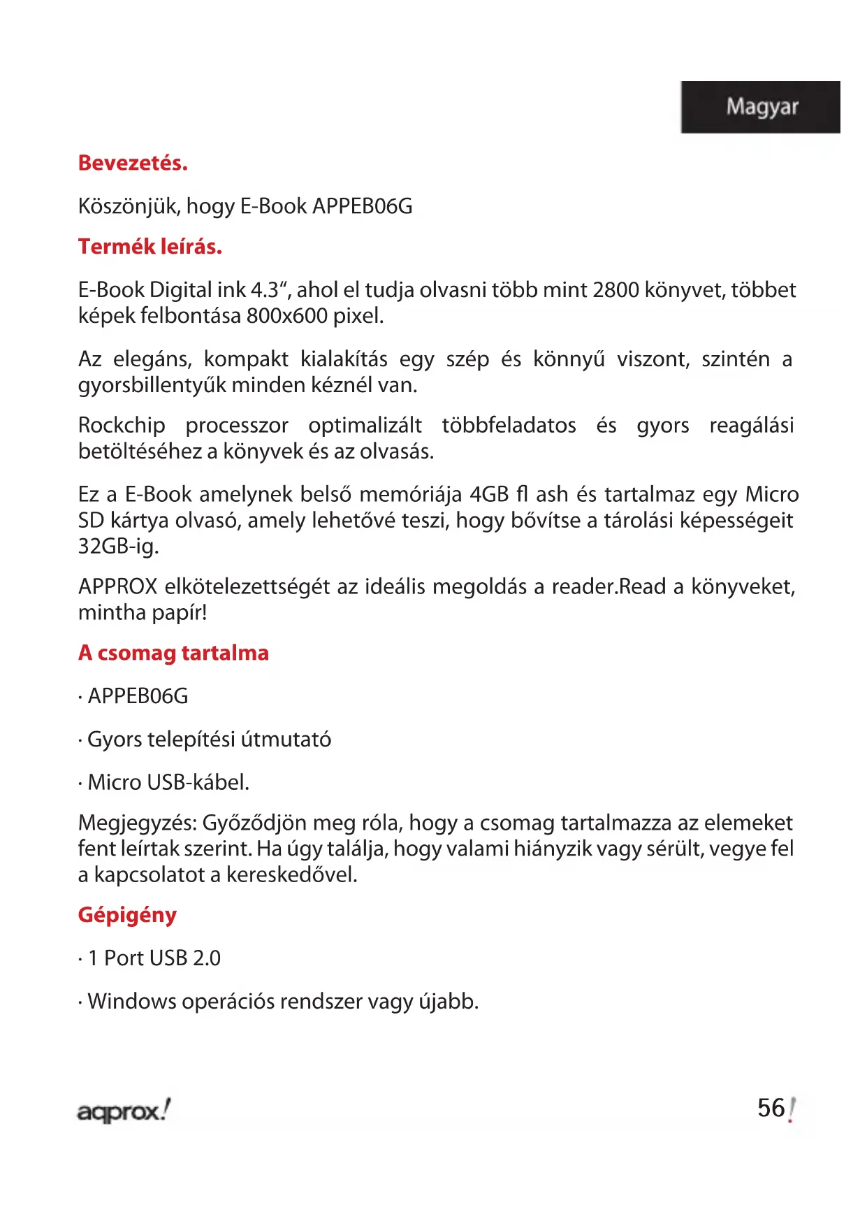 APPEB06G - Elektronikus olvasó Approx - Ingyenes használati útmutató
