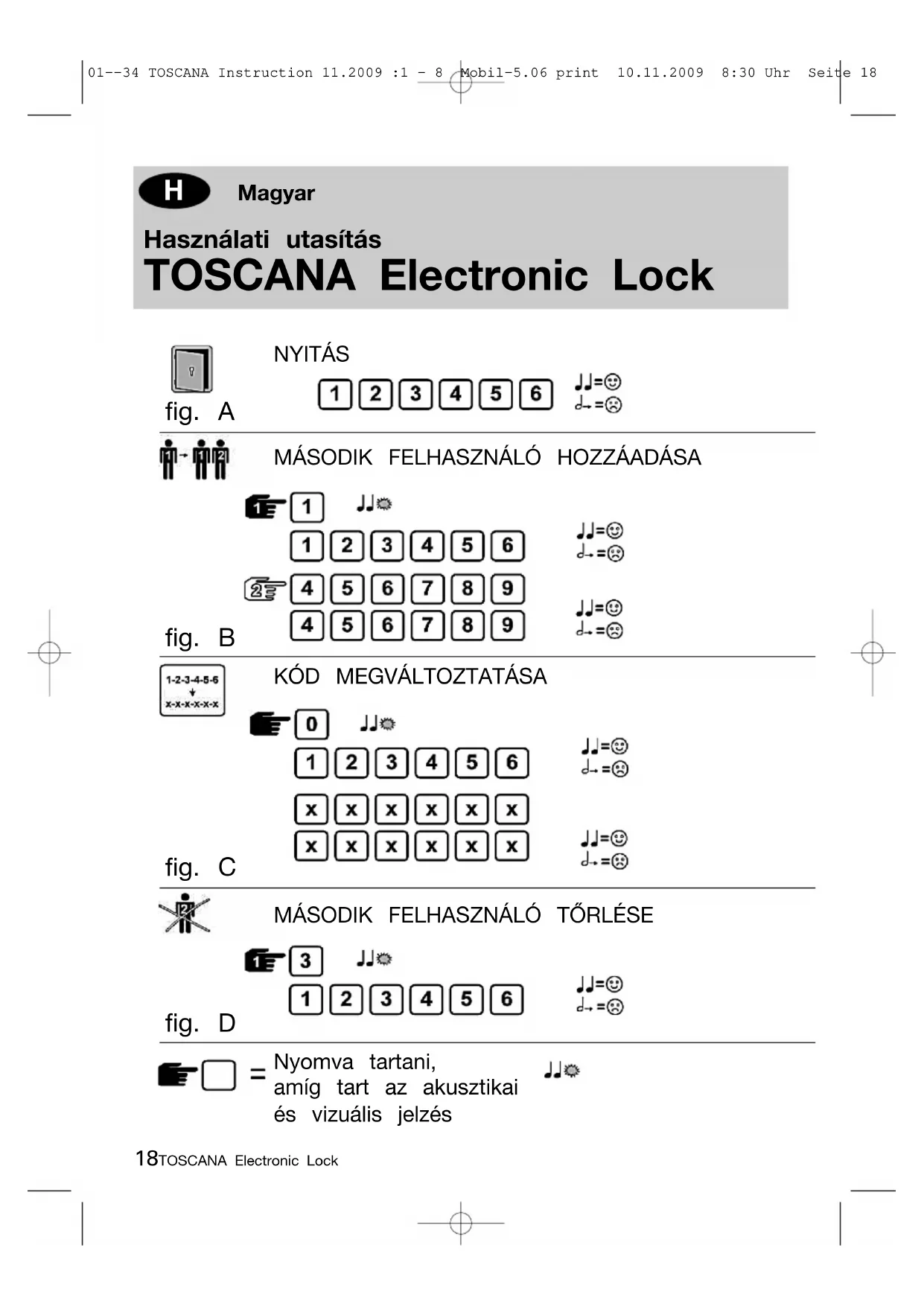 Egy érvényes kód beütése után kettős jelzés következik, az érvénytelen kódra egy hosszú jelzés figyelmeztet. Ha 10 másodpercig nem nyom meg semmit, akkor a megkezdett kódbevitel félbeszakad.
