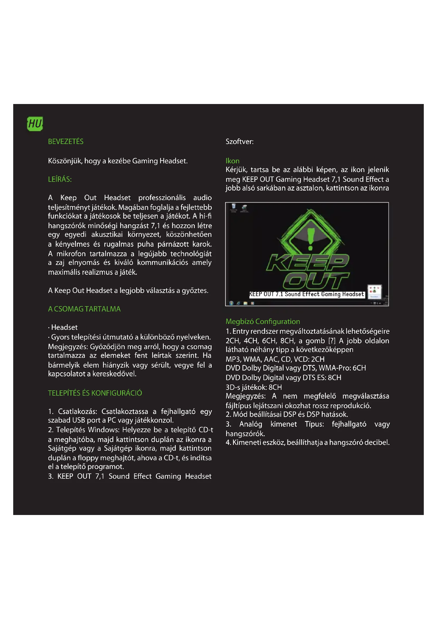 További információk a telepítésével és beállításával ez a termék megy honlapunkon www.keepout.eu, vagy írjon egy e-mailt a következő címre: support@keep-out.eu.