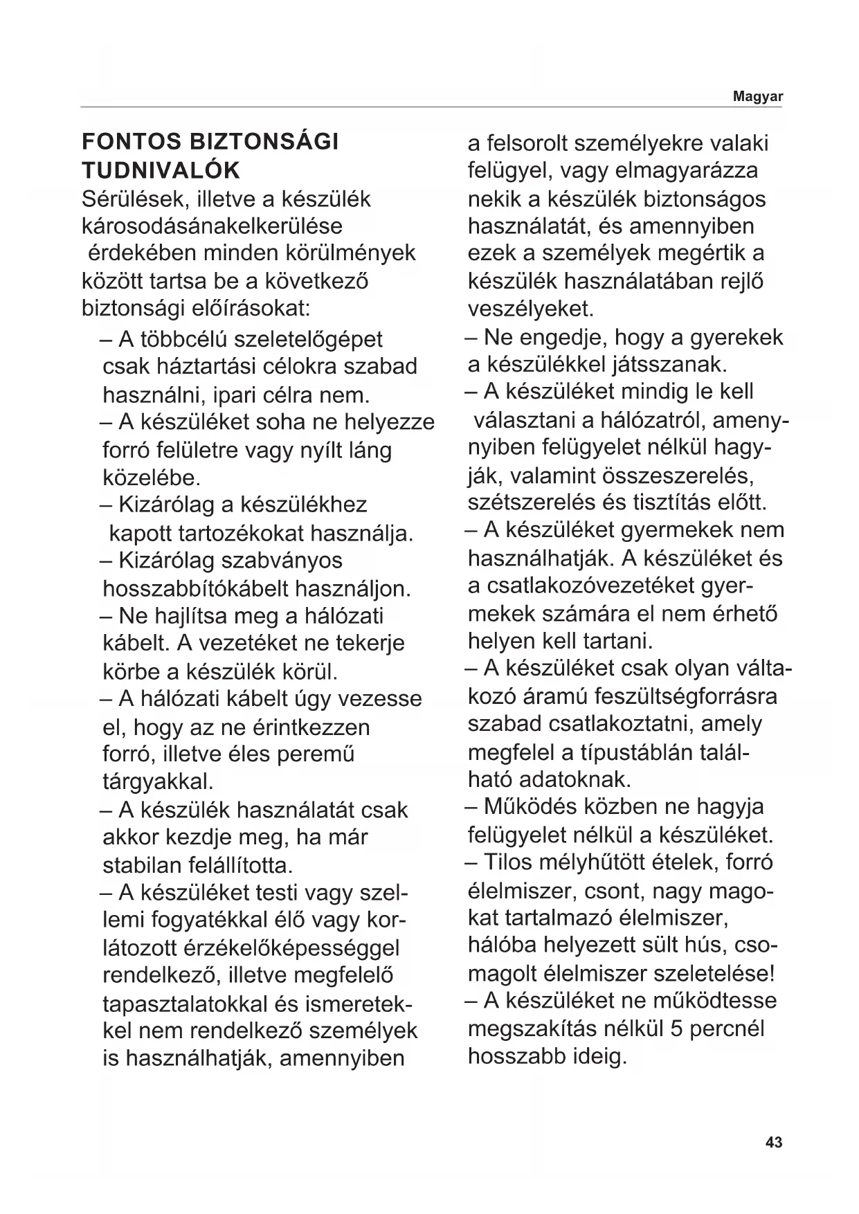 Használati utasítás ...............................43