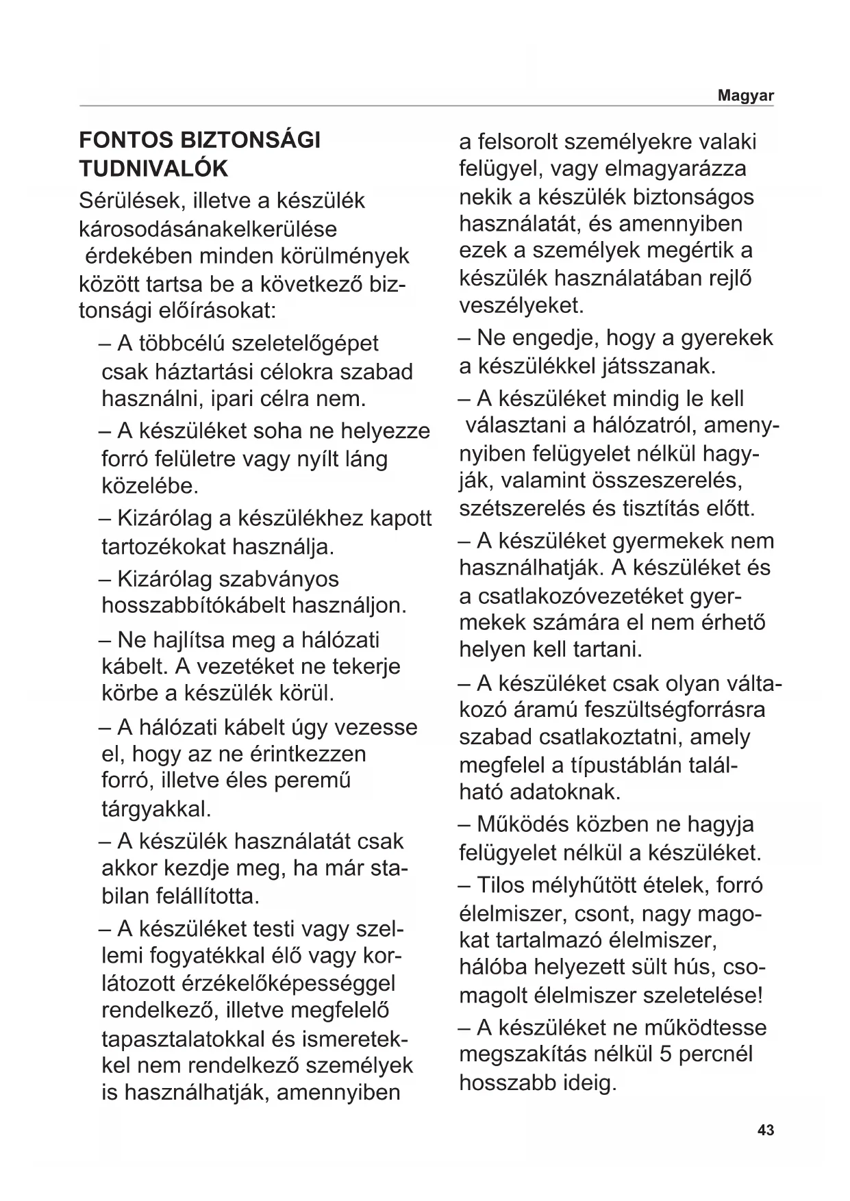 - Nedves kendővel törölje át a házat, valamint a levett részeket (beleértve a vágókést is). Magyar46 Magyar Időnként