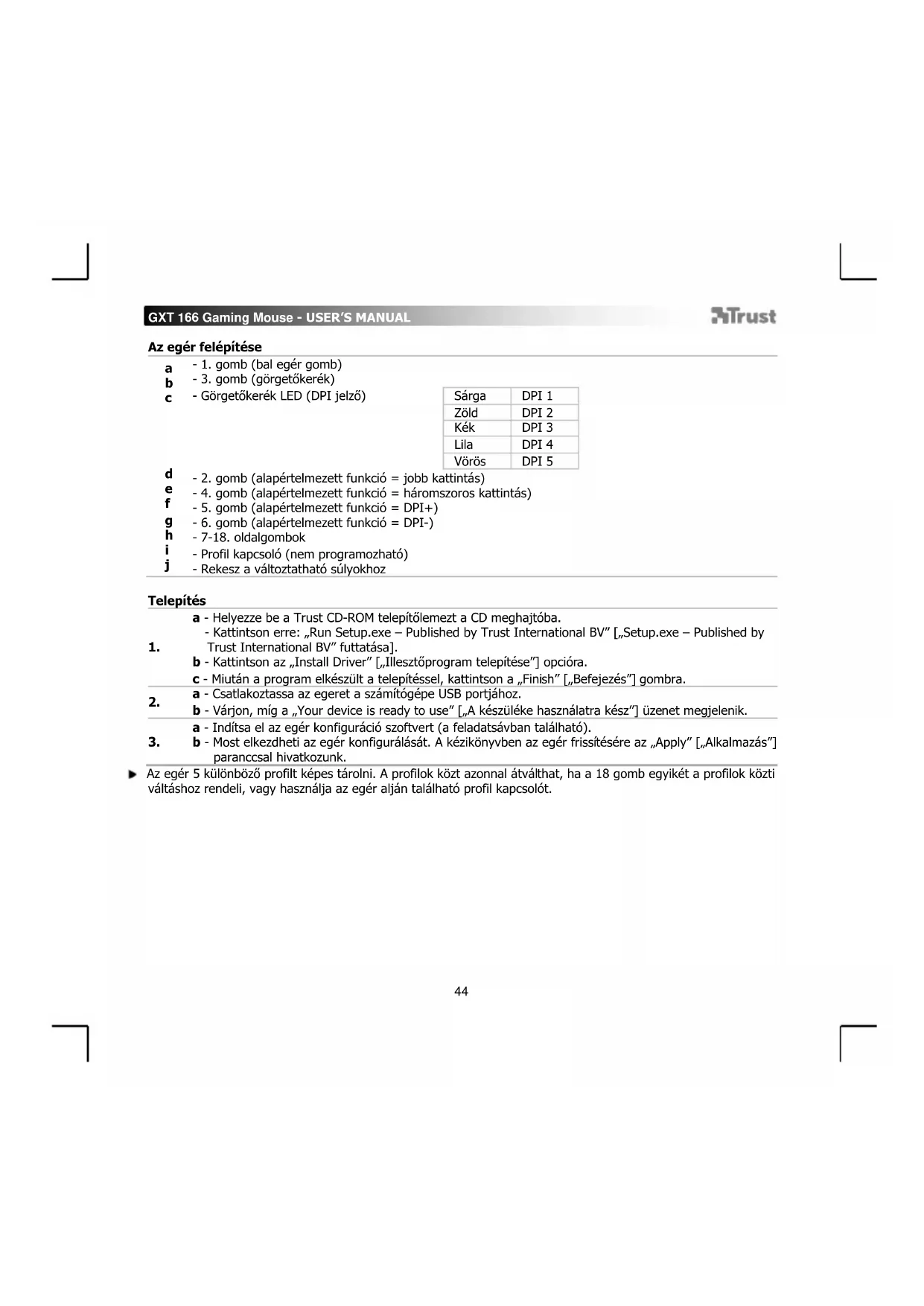 HASZNÁLATI ÚTMUTATÓ GXT 166 19816 TRUST