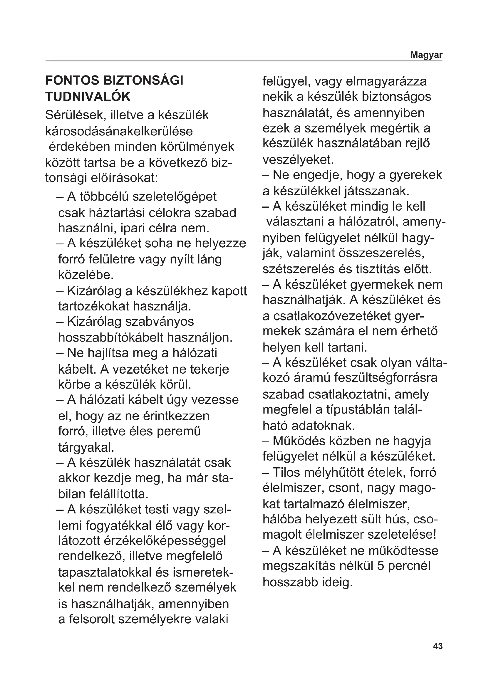Használati utasítás ...............................43