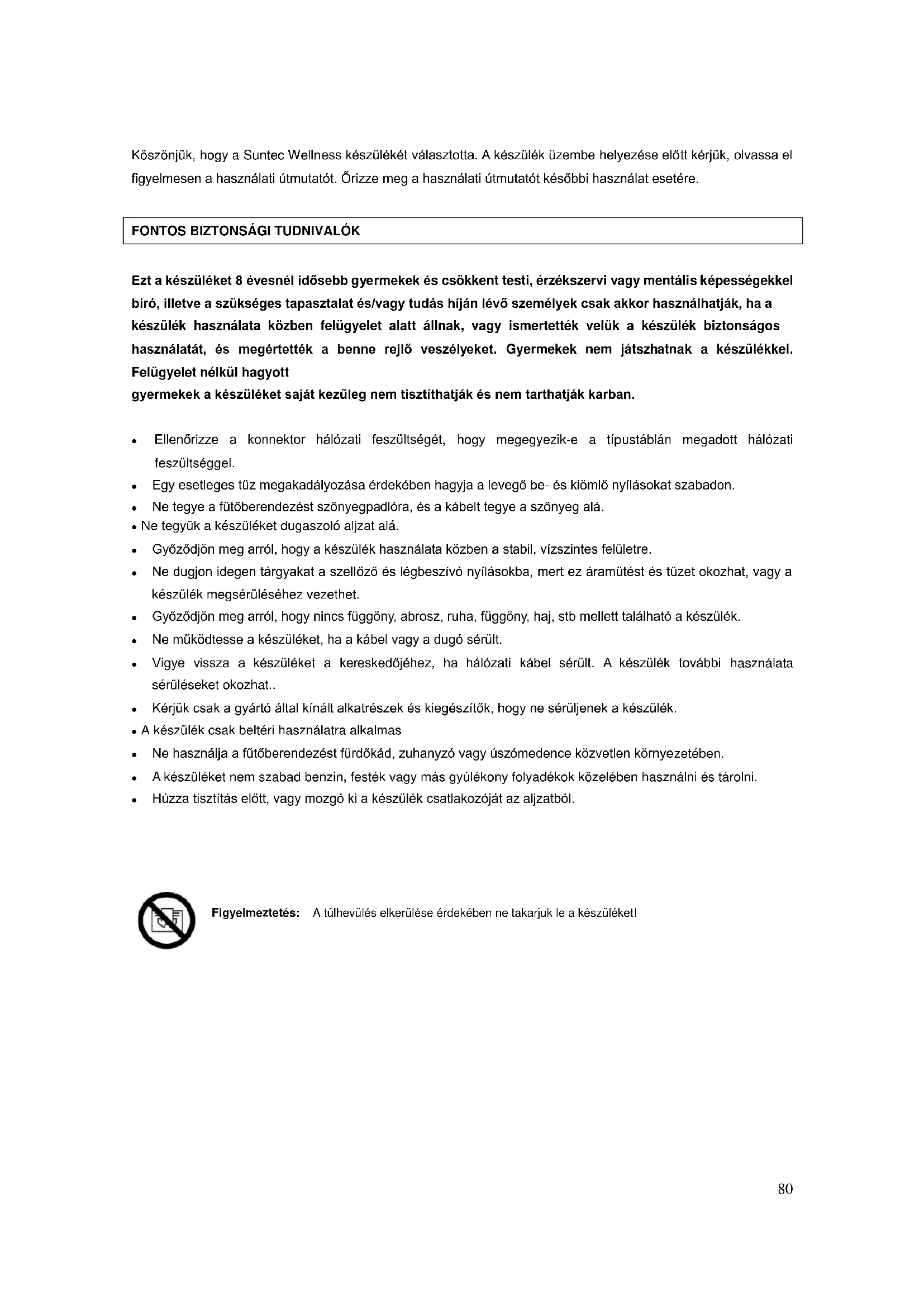 Kézi HU80 Köszönjük, hogy a Suntec Wellness készülékét választotta. A készülék üzembe helyezése előtt kérjük, olvassa el figyelmesen a használati útmutatót. Őrizze meg a használati útmutatót későbbi használat esetére.