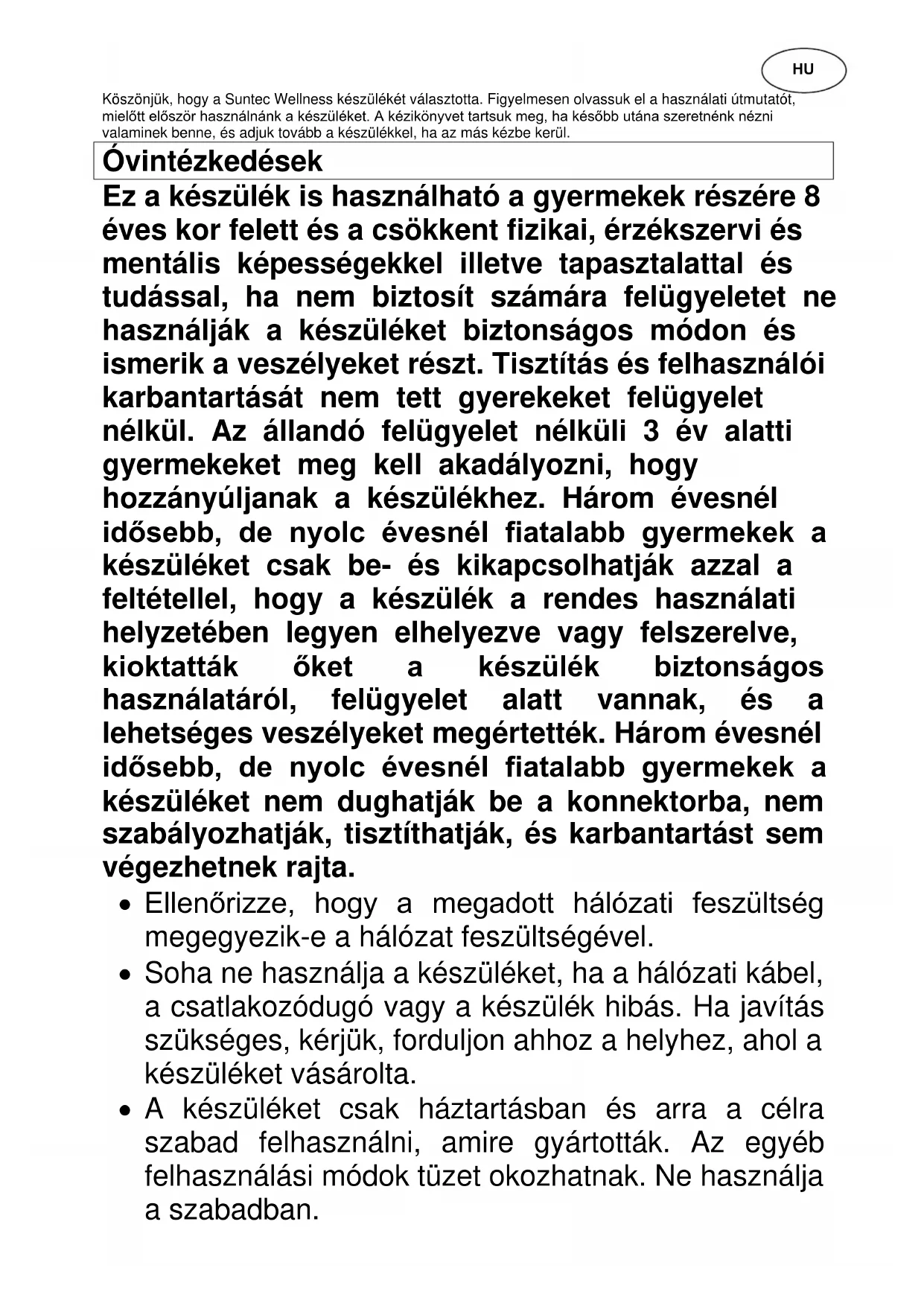 - Ha reklamációt szeretne benyújtani, akkor a készüléket eredeti csomagolásában a pénztári blokkal együtt vigye vissza az üzletbe. A gyors és kényelmes szervizről www.suntec-wellness.de weboldalunkon többet tudhat meg.