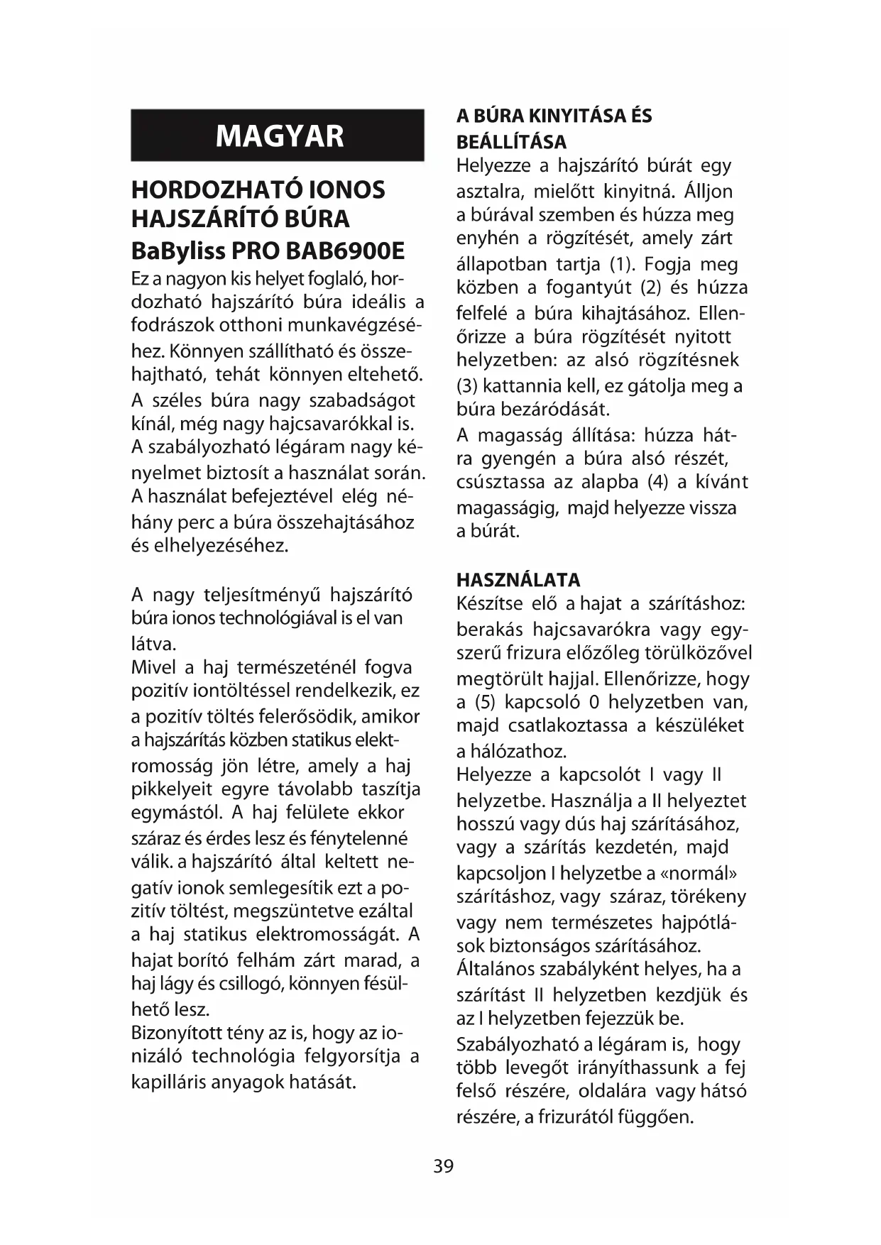 BAB6900E Professional Hard Hat - Hajszárító BABYLISS - Ingyenes használati útmutató