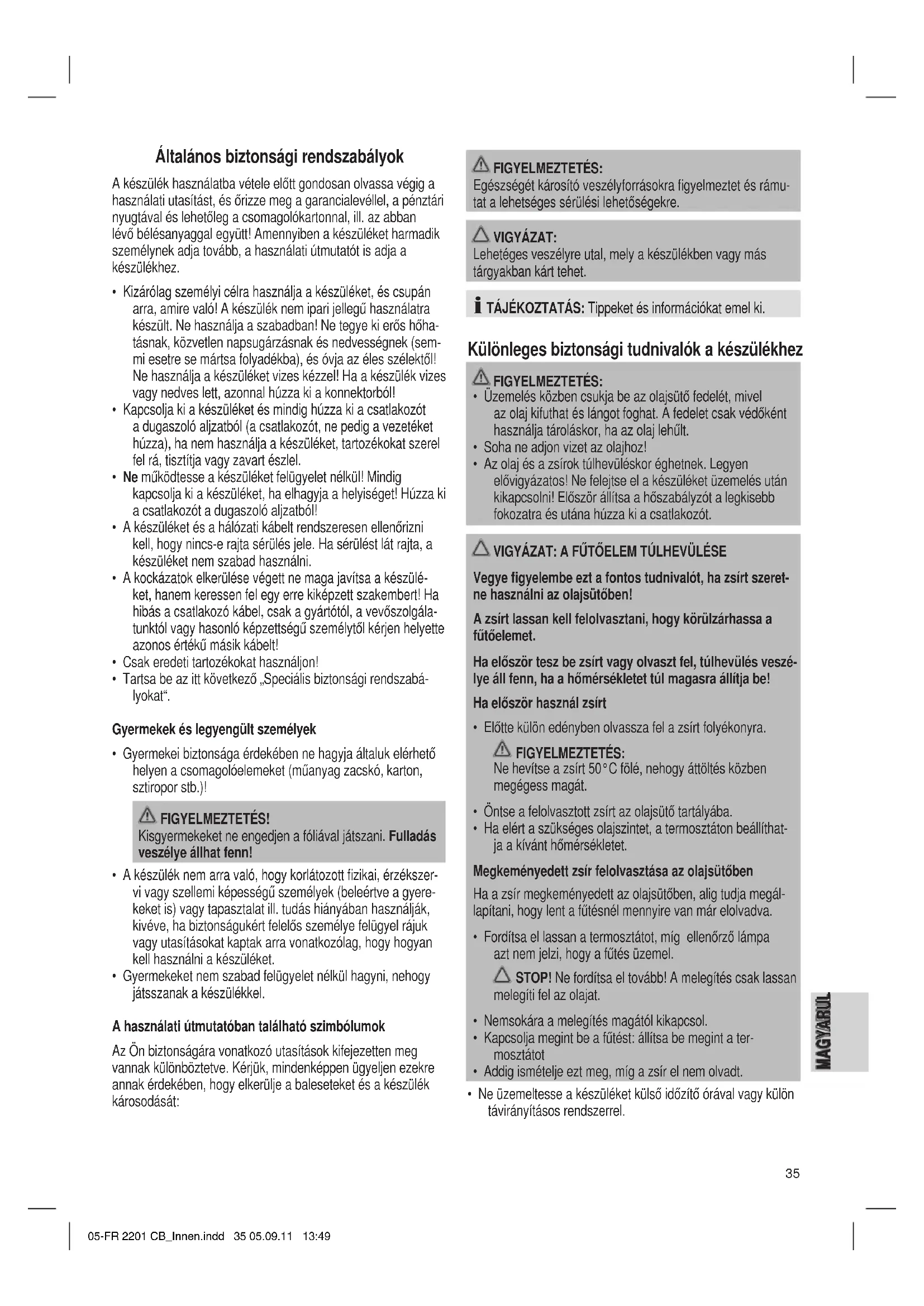 az olajat. 05-FR 2201 CB_Innen.indd 36 05.09.11 13:4937 MAGYARUL